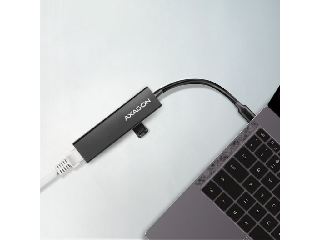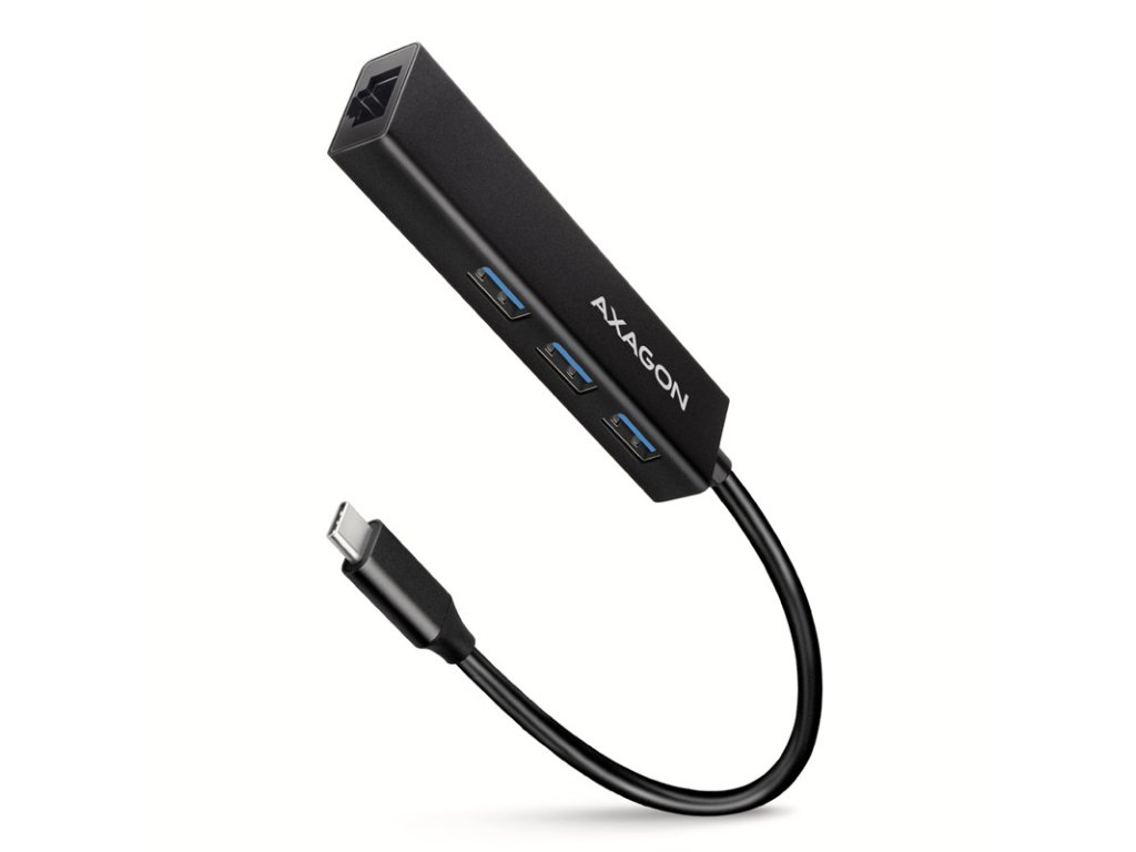 Rozbočovač AXAGON HMC-GL3A USB-C, 3x USB-A, Gbit-LAN, čierny