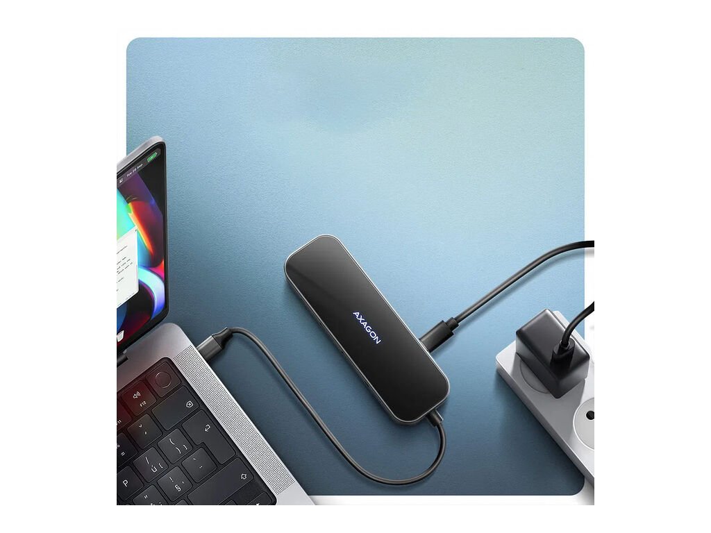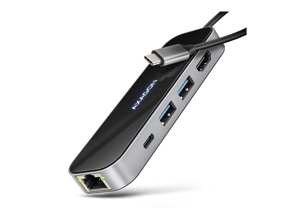 Rozbočovač USB AXAGON HMC-6GLN, 2x USB-A, 1x USB-C, 1x HDMI 2.0, 1x RJ45, 100 W PD - strieborný