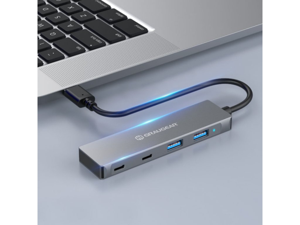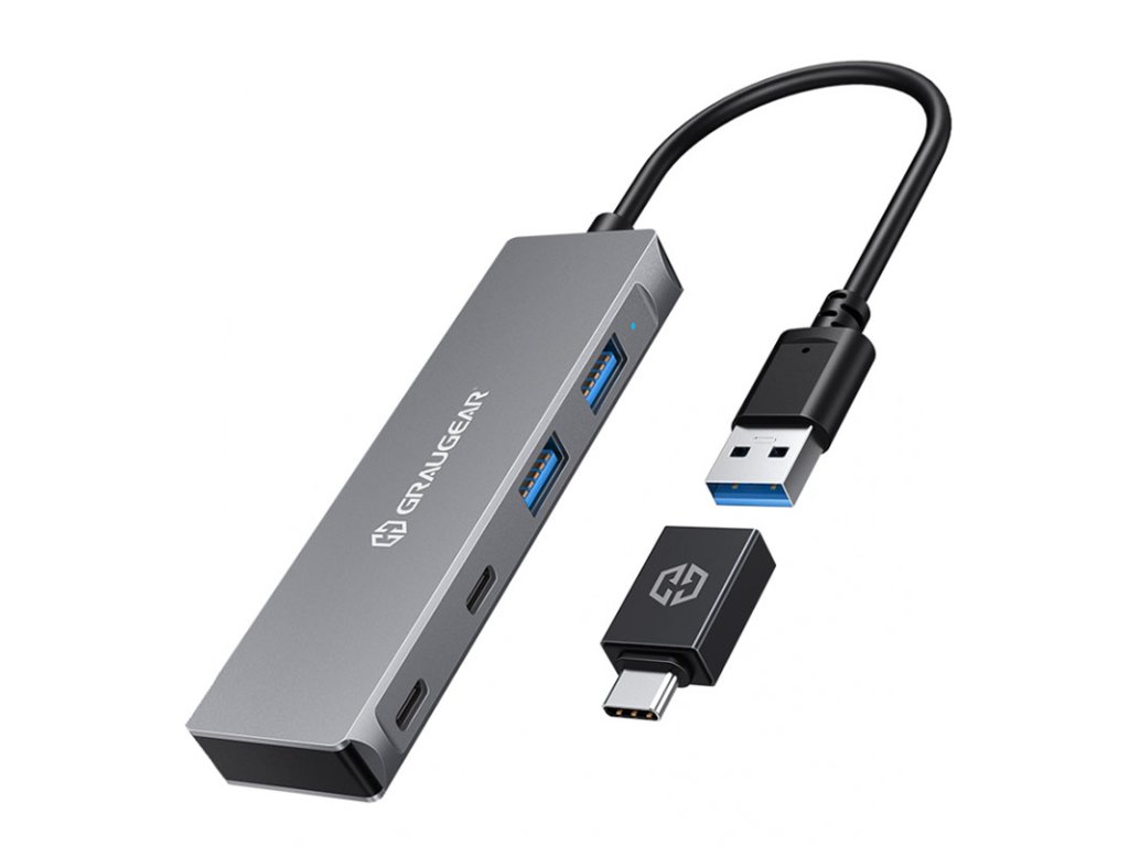 Rozbočovač USB Graugear, 4 porty, 2x USB-A, 2x USB-C, vrátane adaptéra USB-C