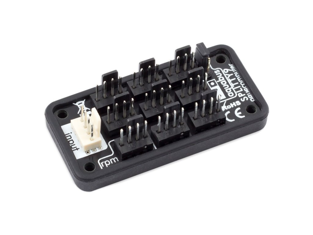 Stránkavodný počítač SPLITTY9 je univerzálny rozdeľovač, ktorý môže napájať až deväť ventilátorov spoločným signálom PWM. Prípadne sa dá použiť aj ako rozdeľovač aquabusu, ktorý presmeruje všetky štyri linky aquabusu na deväť konektorov. To znamená, že k rozdeľovaču je možné pripojiť 3-pinové aj 4-pinové zariadenia aquabus.Najdôležitejšie vlastnosti rozdeľovača aqua computer SPLITTY9: