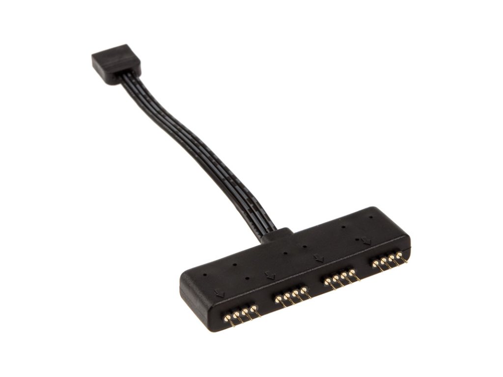 StránkaRozdeľovací kábel Akasa RGB LED je praktický kábel na rozdelenie signálu RGB LED až na štyri zodpovedajúce ventilátory RGB LED alebo pásy RGB LED. Rozdeľovač sa pripája priamo ku kompatibilnej základnej doske prostredníctvom 4-pinového konektora RGB LED (samica) a rozdeľuje signál na štyri výstupy so 4-pinovým konektorom RGB LED (samec).Čierny rozdeľovací kábel bez zástrčky má celkovú dĺžku desať centimetrov a umožňuje jednoduché pripojenie až štyroch ventilátorov RGB LED alebo pásov RGB LED k jednému pripojeniu RGB LED.