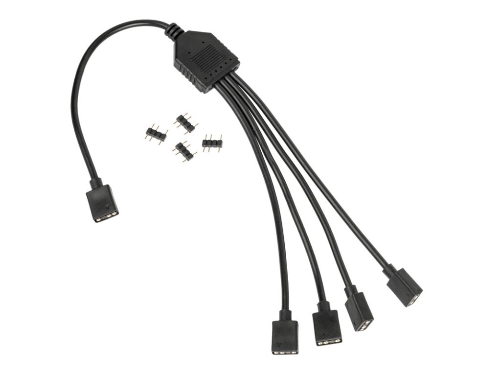 StránkaKolink ARGB 3-pinový rozdeľovací kábel umožňuje rozšíriť zdroj ARGB na základnej doske tak, aby bolo možné vytvoriť estetický systém osvetlenia. Má štandardné 3-pinové adresovateľné RGB headery (5VDG) z jednej zásuvky na štyri zásuvky. Súčasťou balenia sú štyri konektory typu samec - samec.