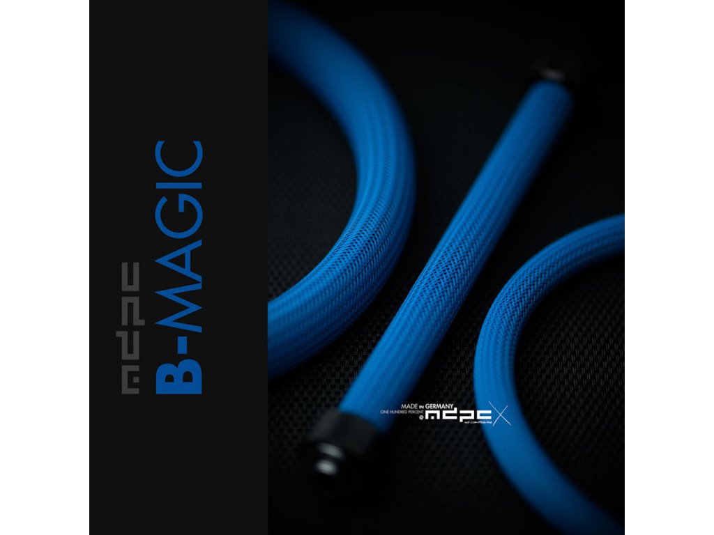 Ide o metrové puzdro BIG vyrobené z vysokokvalitných vlákien PET-X. V porovnaní s inými materiálmi na výrobu rukávov, ako sú napríklad "tkaniny" na báze nylonu, je materiál PET-X vodoodpudivý a odolný voči nečistotám. Okrem toho sa materiál PET-X nezapáli tak náhle a rýchlo ako nylonové materiály. Preto sa môže používať aj v najextrémnejších podmienkach od -58 °C do +155 °C.Priemer plášťov káblov MDPC-X je veľmi variabilný, možno ho roztiahnuť alebo stiahnuť, čo umožňuje širokú škálu možných aplikácií.Rukávy BIG sa dajú roztiahnuť od ~ 12 mm do ~ 24 mm. Na veľmi krátku vzdialenosť sa dá puzdro rozšíriť až na 24,5 až približne 25 milimetrov. Vďaka tomu je objímka BIG vhodná na zväzky káblov, hadice, pevné rúrky alebo veľmi hrubé káble, ako sú HDMI alebo napájacie káble. Farba objímky je sýto modrá, B-Magic.