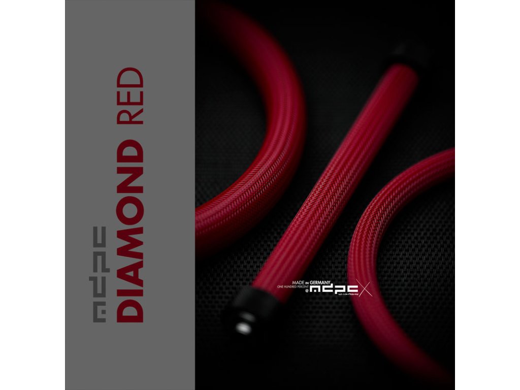 Ide o metrové puzdro BIG vyrobené z vysokokvalitných vlákien PET-X. V porovnaní s inými materiálmi na výrobu rukávov, ako sú napríklad "tkaniny" na báze nylonu, je materiál PET-X vodoodpudivý a odolný voči nečistotám. Okrem toho sa materiál PET-X nezapáli tak náhle a rýchlo ako nylonové materiály. Preto sa môže používať aj v najextrémnejších podmienkach od -58 °C do +155 °C.Priemer plášťov káblov MDPC-X je veľmi variabilný, možno ho roztiahnuť alebo stiahnuť, čo umožňuje širokú škálu možných aplikácií.Rukávy BIG sa dajú roztiahnuť od ~ 12 mm do ~ 24 mm. Na veľmi krátku vzdialenosť sa dá puzdro rozšíriť až na 24,5 až približne 25 milimetrov. Vďaka tomu je objímka BIG vhodná na zväzky káblov, hadice, pevné rúrky alebo veľmi hrubé káble, ako sú HDMI alebo napájacie káble. Farba puzdra je štýlová červená, diamantovo červená.