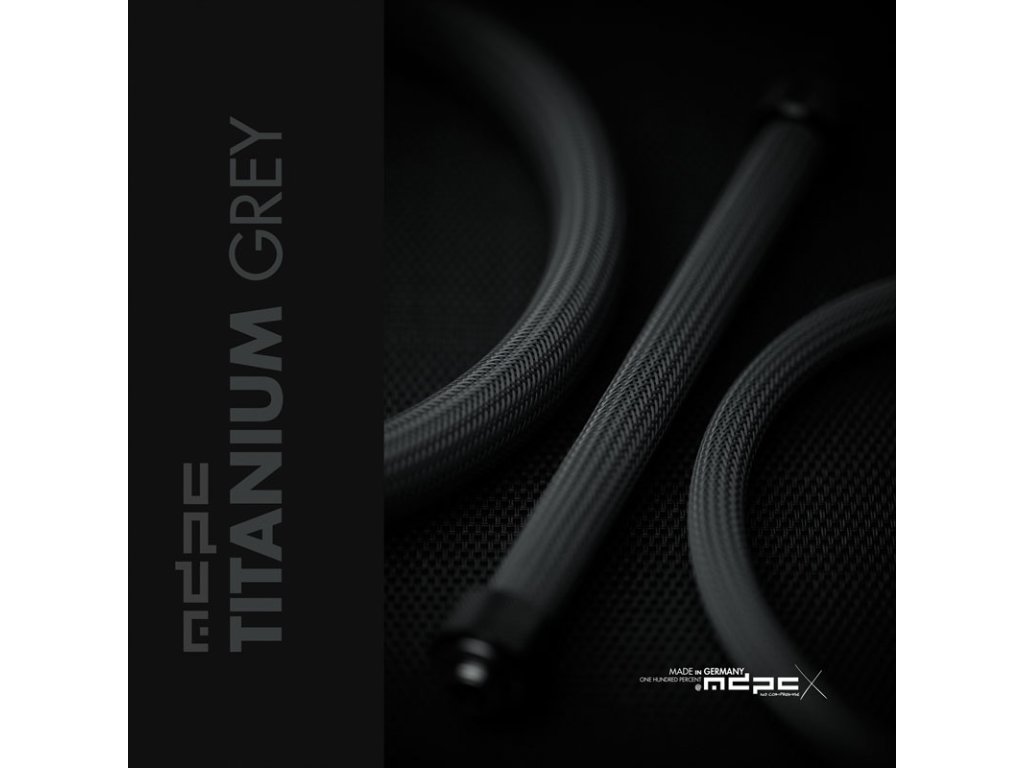 Ide o metrové puzdro BIG vyrobené z vysokokvalitných vlákien PET-X. V porovnaní s inými materiálmi na výrobu rukávov, ako sú napríklad "tkaniny" na báze nylonu, je materiál PET-X vodoodpudivý a odolný voči nečistotám. Okrem toho sa materiál PET-X nezapáli tak náhle a rýchlo ako nylonové materiály. Preto sa môže používať aj v najextrémnejších podmienkach od -58 °C do +155 °C.Priemer plášťov káblov MDPC-X je veľmi variabilný, možno ho roztiahnuť alebo stiahnuť, čo umožňuje širokú škálu možných aplikácií.Rukávy BIG sa dajú roztiahnuť od ~ 12 mm do ~ 24 mm. Na veľmi krátku vzdialenosť sa dá puzdro rozšíriť až na 24,5 až približne 25 milimetrov. Vďaka tomu je objímka BIG vhodná na zväzky káblov, hadice, pevné rúrky alebo veľmi hrubé káble, ako sú HDMI alebo napájacie káble. Farba puzdra je elegantná titánovo sivá.