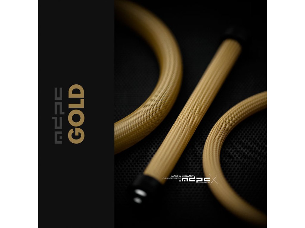 Ide o metrové puzdro BIG vyrobené z vysokokvalitných vlákien PET-X. V porovnaní s inými materiálmi na výrobu rukávov, ako sú napríklad "tkaniny" na báze nylonu, je materiál PET-X vodoodpudivý a odolný voči nečistotám. Okrem toho sa materiál PET-X nezapáli tak náhle a rýchlo ako nylonové materiály. Preto sa môže používať aj v najextrémnejších podmienkach od -58 °C do +155 °C.Priemer plášťov káblov MDPC-X je veľmi variabilný, možno ho roztiahnuť alebo stiahnuť, čo umožňuje širokú škálu možných aplikácií.Rukávy BIG sa dajú roztiahnuť od ~ 12 mm do ~ 24 mm. Na veľmi krátku vzdialenosť sa dá puzdro rozšíriť až na 24,5 až približne 25 milimetrov. Vďaka tomu je objímka BIG vhodná na zväzky káblov, hadice, pevné rúrky alebo veľmi hrubé káble, ako sú HDMI alebo napájacie káble. Objímka je k dispozícii v elegantnej zlatej farbe.