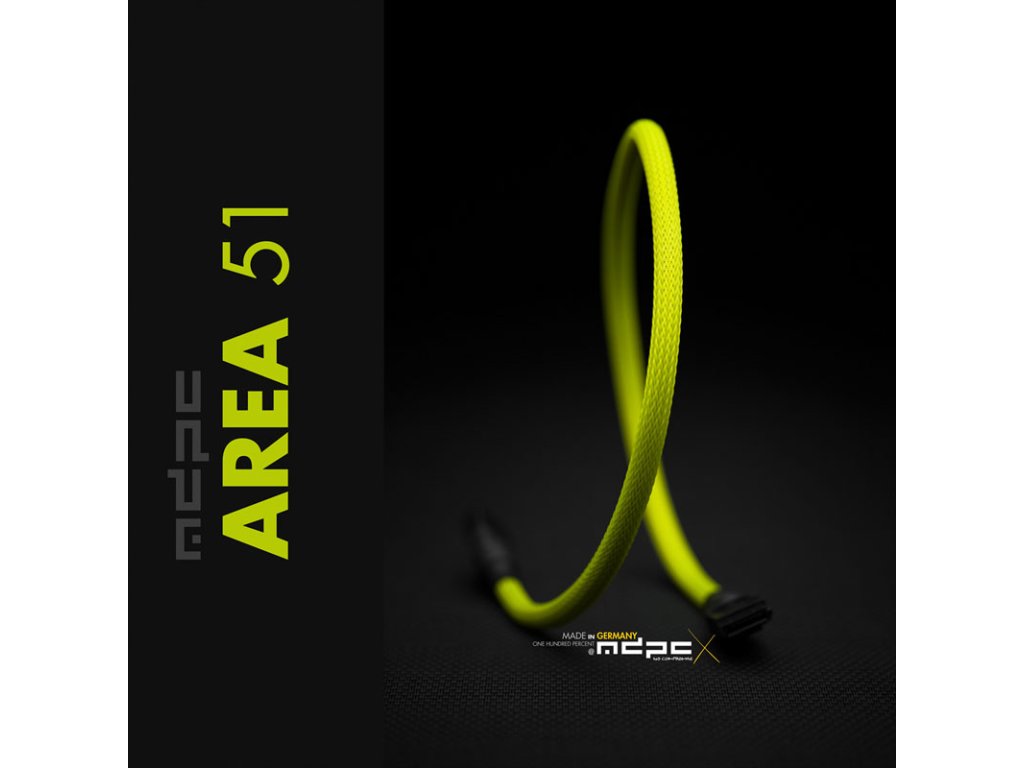 Ide o metrový stredne dlhý rukáv vyrobený z vysokokvalitných vlákien PET-X. V porovnaní s inými materiálmi rukávov, ako sú napríklad "tkaniny" na báze nylonu, je materiál PET-X vodoodpudivý a odolný voči nečistotám. Okrem toho sa materiál PET-X nezapáli tak náhle a rýchlo ako nylonové materiály. Preto sa môže používať aj v najextrémnejších podmienkach od -58 °C do +155 °C.Priemer plášťov káblov MDPC-X je veľmi variabilný, možno ho roztiahnuť alebo stiahnuť, čo umožňuje širokú škálu možných aplikácií. Stredne veľké plášte sa dajú natiahnuť od ~ 5 mm do ~ 14,5 mm a farebne vynikajú odtieňom Area-51, ktorý sa v závislosti od farby pozadia mihá medzi neónovou zelenou a neónovou žltou.