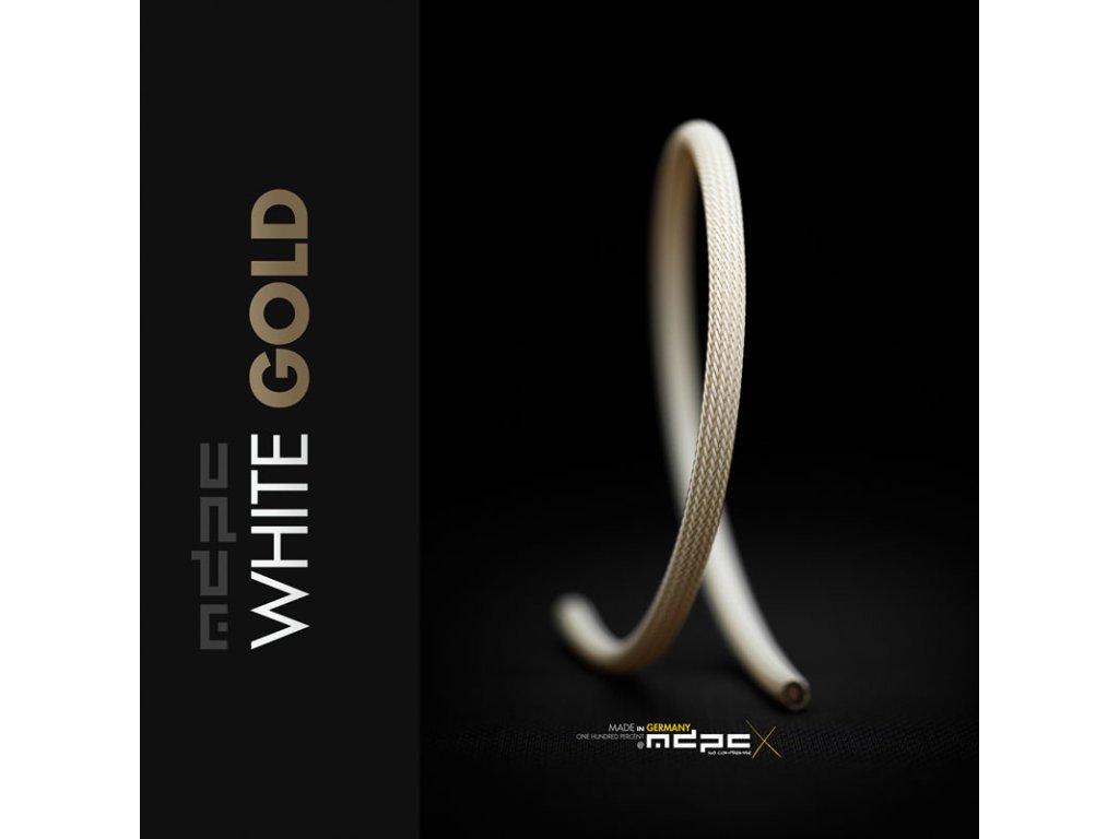 Ide o metrový stredne dlhý rukáv vyrobený z vysokokvalitných vlákien PET-X. V porovnaní s inými materiálmi rukávov, ako sú napríklad "tkaniny" na báze nylonu, je materiál PET-X vodoodpudivý a odolný voči nečistotám. Okrem toho sa materiál PET-X nezapáli tak náhle a rýchlo ako nylonové materiály. Preto sa môže používať aj v najextrémnejších podmienkach od -58 °C do +155 °C.Priemer plášťov káblov MDPC-X je veľmi variabilný, možno ho roztiahnuť alebo stiahnuť, čo umožňuje širokú škálu možných aplikácií. Stredne veľké plášte sa dajú roztiahnuť od ~ 5 mm do ~ 14,5 mm a majú elegantnú bielo-zlatú farbu.