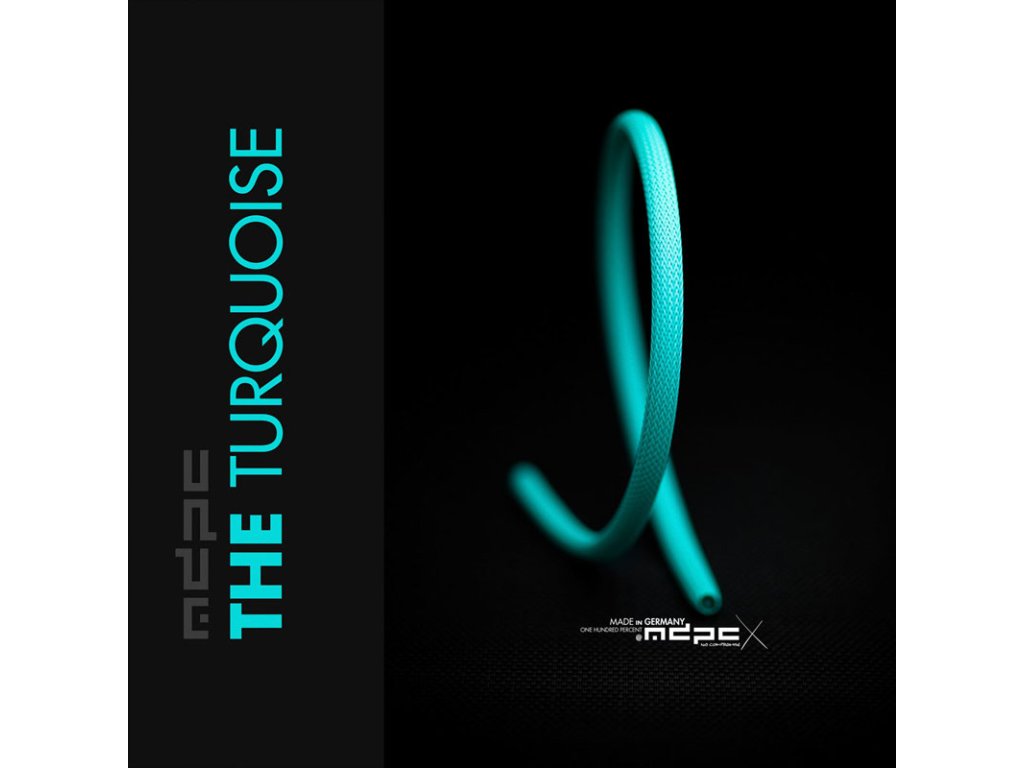 Ide o metrový stredne dlhý rukáv vyrobený z vysokokvalitných vlákien PET-X. V porovnaní s inými materiálmi rukávov, ako sú napríklad "tkaniny" na báze nylonu, je materiál PET-X vodoodpudivý a odolný voči nečistotám. Okrem toho sa materiál PET-X nezapáli tak náhle a rýchlo ako nylonové materiály. Preto sa môže používať aj v najextrémnejších podmienkach od -58 °C do +155 °C.Priemer plášťa kábla MDPC-X je veľmi variabilný, možno ho roztiahnuť alebo stiahnuť, a preto umožňuje širokú škálu možných aplikácií. Stredne veľké plášte sa dajú roztiahnuť od ~ 5 mm do ~ 14,5 mm a vynikajú svojou žiarivo tyrkysovou farbou.