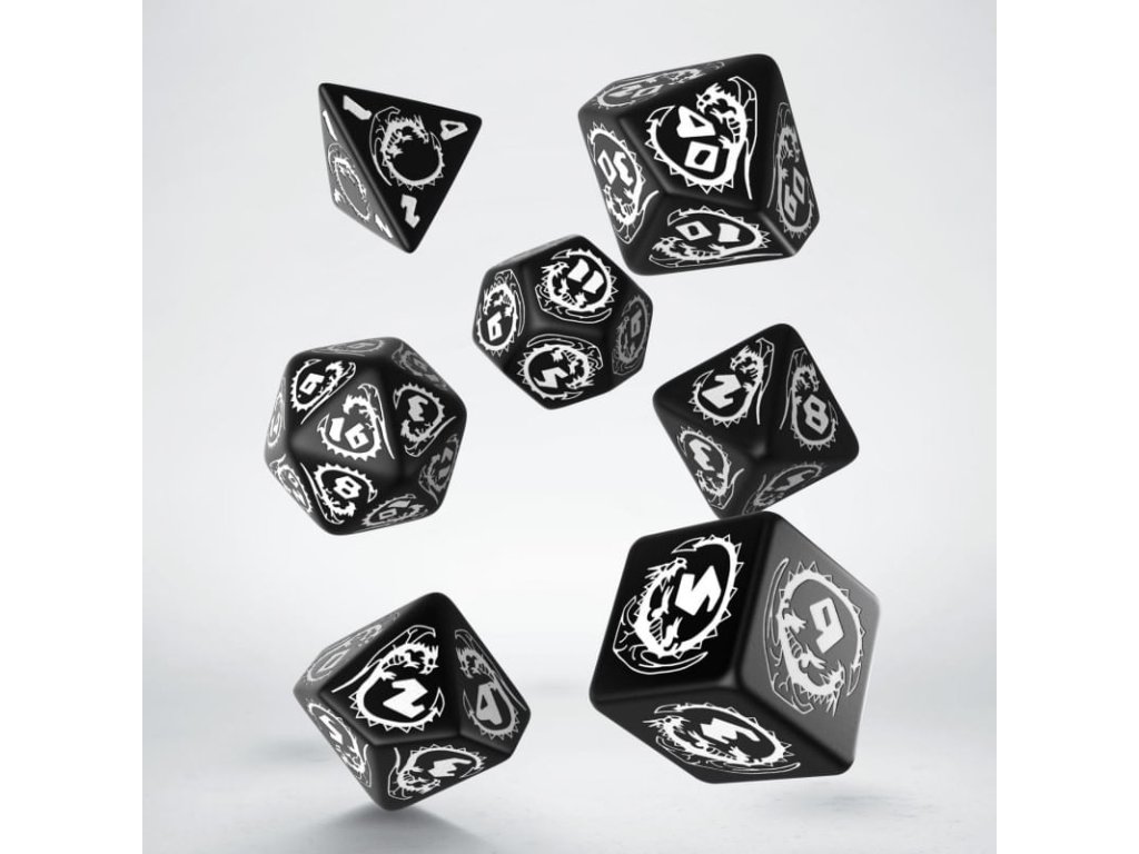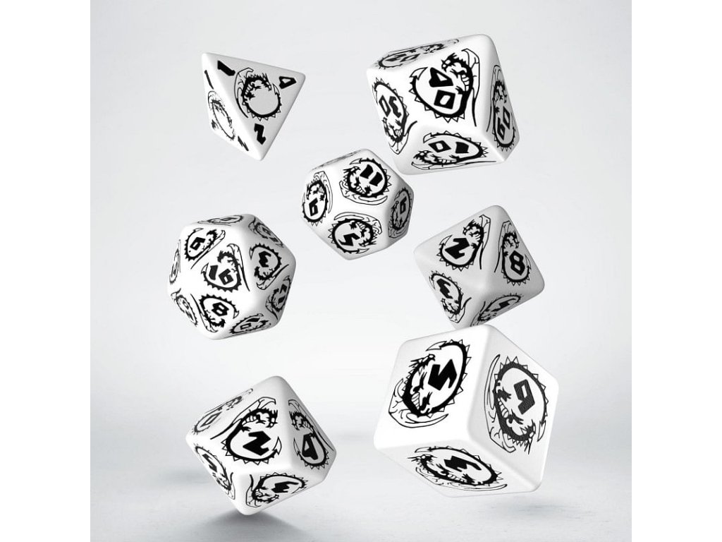 Sada precizně vyvedených kostek zdobených draky, ideální doplněk pro hráče her na hrdiny. Sada obsahuje sedm kostek: čtyř, šesti, osmi, desíti, dvanácti, dvaceti stěnnou a procentovou kostku. Barvy jsou uvedeny vždy v pořadí barva podkladu-barva run. * Povšimněte si prosím netradičního provedení čtyřstěnné kostky - platné číslo je vždy vpravo u základny, jako jediné ze tří je správně otočené.Diskusia