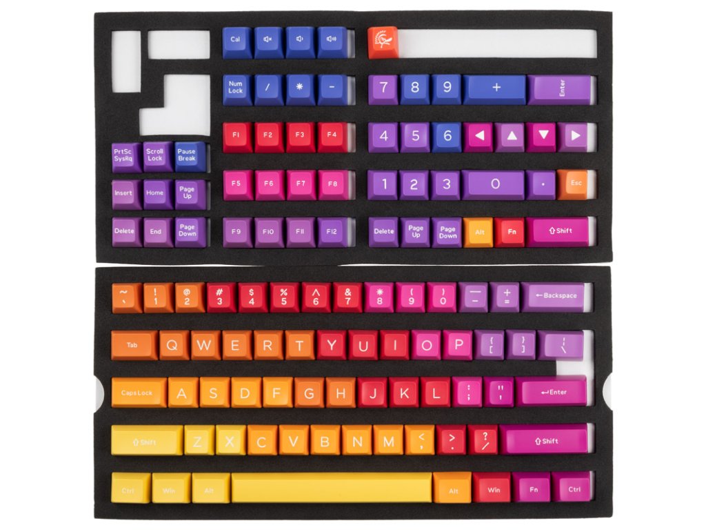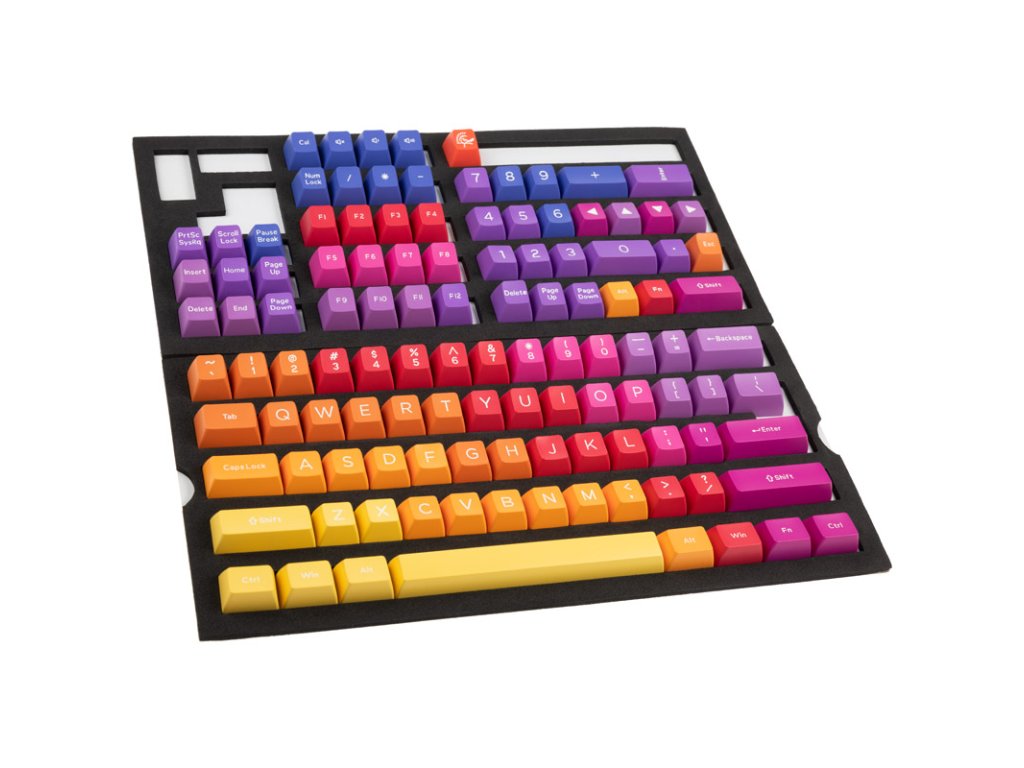 Tu ponúkaná súprava Ducky obsahujeKlávesnice ktoré pozostávajú zPlast ABS pozostáva z. Sada obsahuje 108 klávesov v americkom rozložení pre klávesnicu plnej veľkosti. Klávesy nie sú priesvitné.