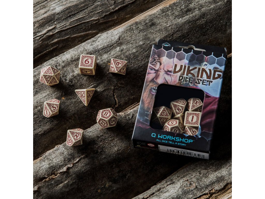 Sada kostek zdobených ve vikingském stylu, skvělý atmosferický doplněk pro hráče her na hrdiny. Sada obsahuje sedm kostek: čtyř, šesti, osmi, desíti, dvanácti, dvaceti stěnnou a procentovou kostku.Diskusia