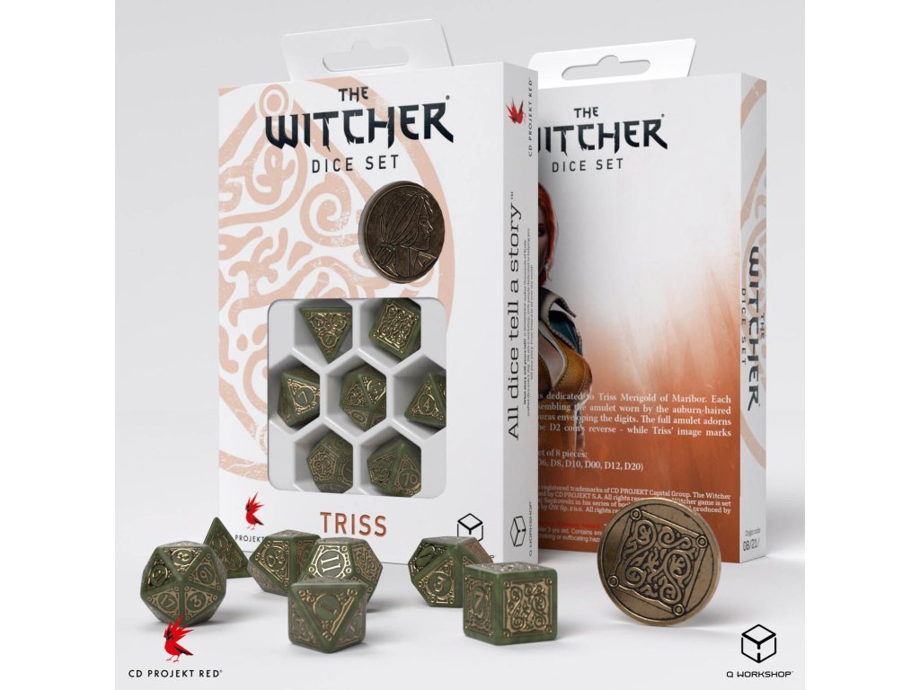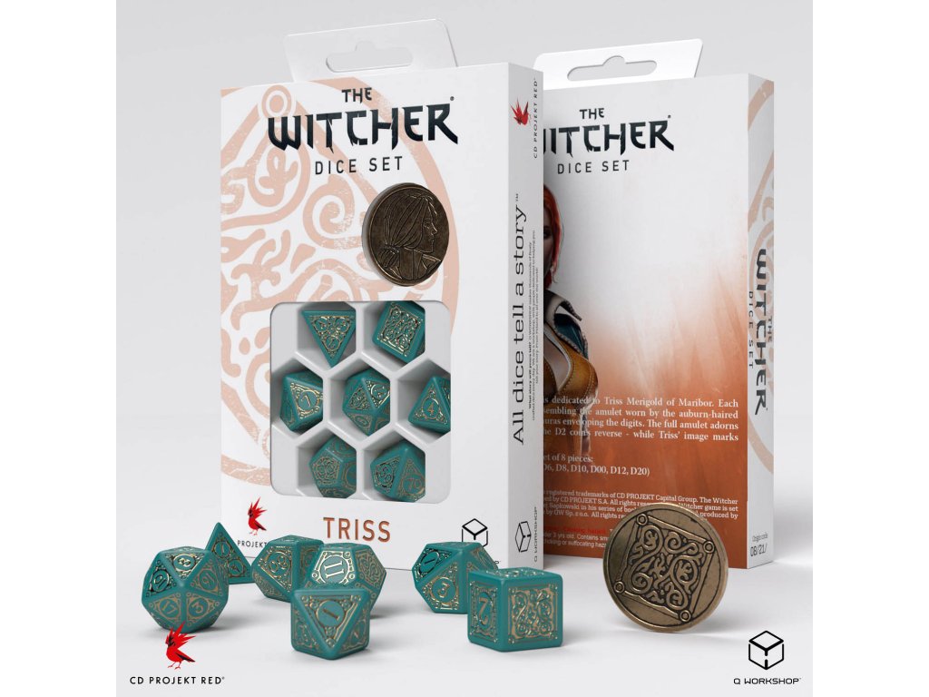 Sada obsahuje 7 mnohostěnných zaklínačských kostek v grafice čarodějky Triss, věrné přítelkyně zaklínače Geralta z Rivie. Kostky využijete pro hraní her na hrdiny, např. pro skvělé zaklínačské The Witcher RPG! V nabídce máme 3 různé barevné varianty kostek: The Law of Surprise (Merigold the Fearless), The Fourteenth of the Hill (khaki zelená) a The Beautiful Healer (tyrkysovo-zlatá). Balení obsahuje 1x čtyř, 1x šesti, 1x osmi, 1x desíti, 1x dvanácti, 1x dvaceti stěnnou a 1x procentovou kostku. Součástí sady je také sběratelská mince s portrétem Triss (⌀ 3 cm).Diskusia