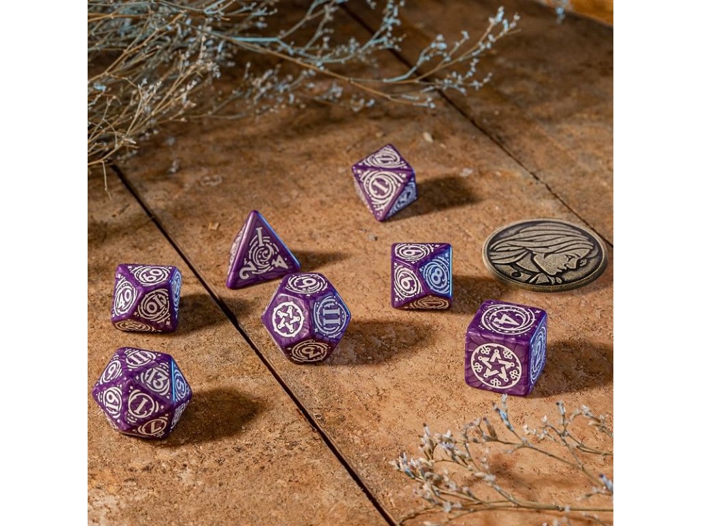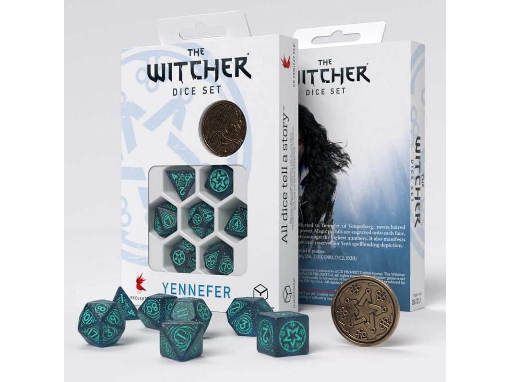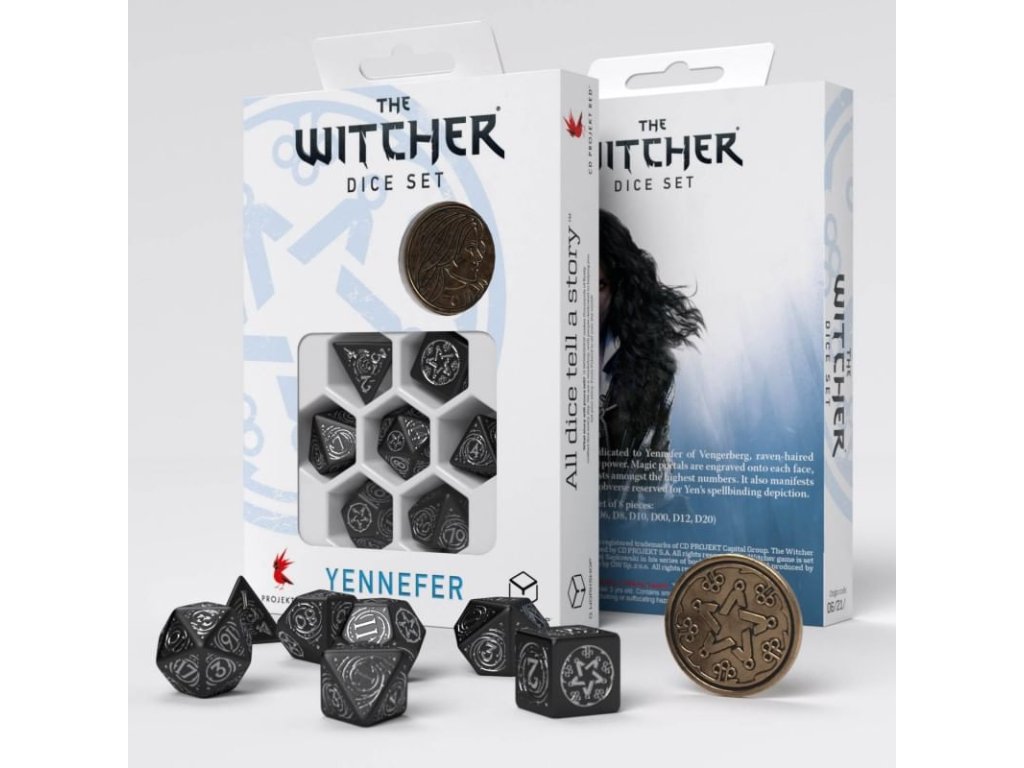 Sada obsahuje 7 mnohostěnných zaklínačských kostek ve stylu čarodějky Yennefer, milé Bílého vlka, Geralta z Rivie. Kostky využijete nejen při hraní her na hrdiny jako je The Witcher RPG. V nabídce máme 3 různé barevné varianty kostek: Sorceress Supreme (zelená), The Obsidian Star (černo-stříbrná) a Lilac and Gooseberries (fialovo-bílá). Balení obsahuje 1x čtyř, 1x šesti, 1x osmi, 1x desíti, 1x dvanácti, 1x dvaceti stěnnou a 1x procentovou kostku. Součástí sady je také sběratelská mince s portrétem Yennefer (⌀ 3 cm).Diskusia