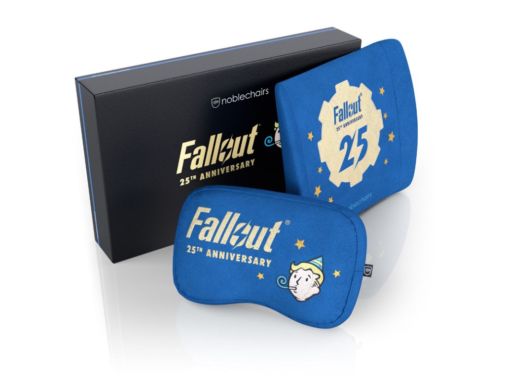 Nenechajte Vault Boya oslavovať osamote! Je to 25. výročie série Fallout od spoločnosti Bethesda a noblechairs predstavuje túto limitovanú edíciu oslavnej sady vankúšov! Obsahuje logo hry Fallout a vyobrazenie bezpečnostnej brány Vaultu, ktoré pripomína túto príležitosť. Vankúše podopierajú krk aj chrbát, čím vám poskytnú extra pohodlie, keď si nasadíte párty klobúk a budete sa jednoducho zabávať. Pretože noblechairs vždy zostáva rovnaký a prináša najvyššiu kvalitu pre každú príležitosť.Slávnostný pád značky