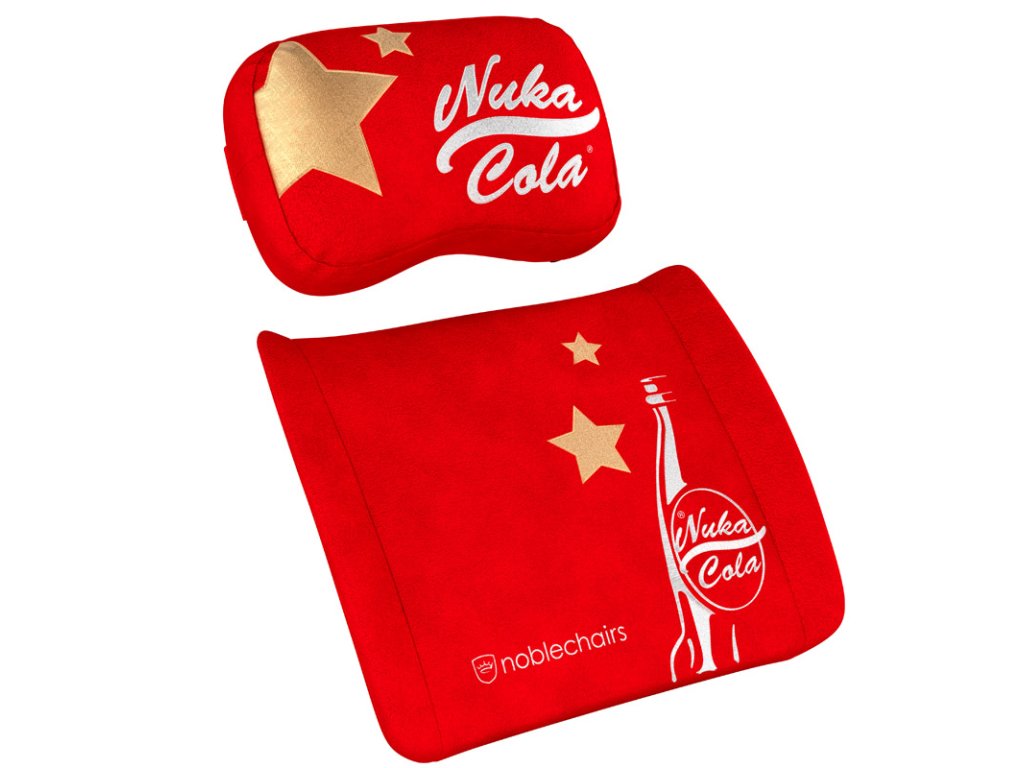 Detailná výšivka ikonickéhoFľaša Nuka-Cola na vankúši na operadle a nápis Nuka-Cola na vankúši na krku vám priblížia slávne časy Ameriky pred Veľkou vojnou. Podčiarknuté zlatými hviezdami a diskrétnymvznešené stoličky-Značky, vankúše sa zlepšujú každývznešené stoličkyči je toEPIC Nuka-Cola Edition alebo niektorý z ďalších modelov - prinášajú vámnajvyšší komfort.Pamäťová pena vytvaruje vaše sedadlo