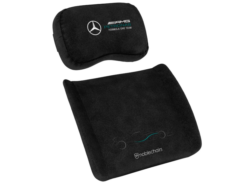 Exkluzívna a krásna výšivka na krčnom aj bedrovom vankúši predstavuje pôsobivé ambície a úspech majstra sveta F1. V hornej časti sa nachádza logo tímu Mercedes-AMG Petronas Formula One Team. Na bedrovom vankúši je tiež jemná silueta víťazného vozidla formuly 1 nad logom noblechairs. Bez ohľadu na to, či ho pridáte k stoličke EPIC Mercedes-AMG Petronas F1 Team, alebo ním ozvláštnite niektorý z našich početných ďalších modelov, vždy si budete môcť vychutnať pohodlie na najvyššej úrovni.