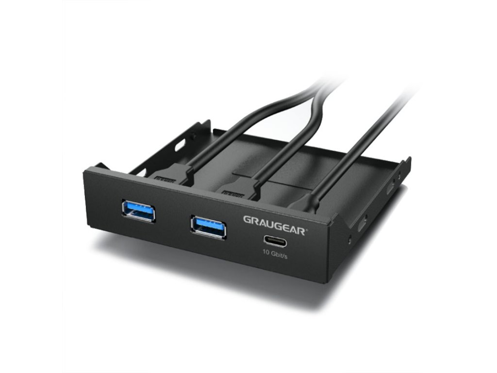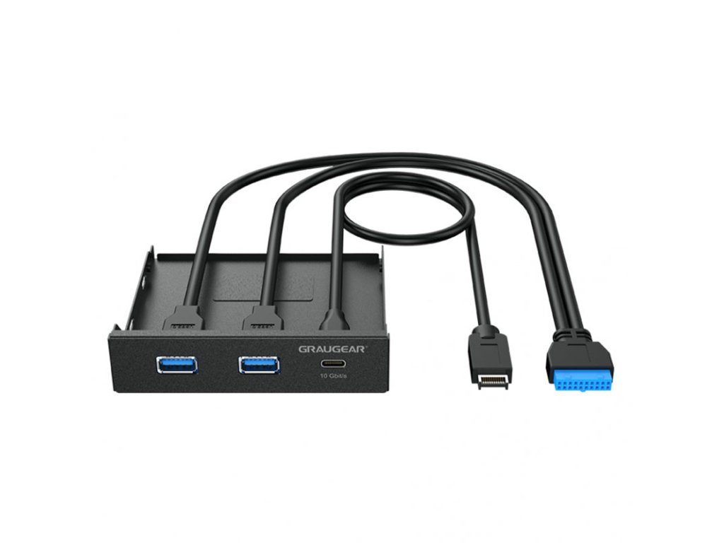 Pri pripojení typu C sa údaje prenášajú rýchlosťou prenosu dátdo 10 Gbit/s a na portoch USB-A sdo 5 Gbit/s prevod. Jednoduchý a elegantný predný panel sa inštaluje do voľného 3,5-palcového štandardného slotu v počítači.