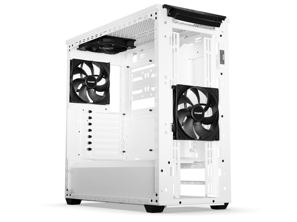 Stránkabuďte ticho! Shadow Base 800 DX vďaka kovovému prednému panelu po celej dĺžke s vynikajúcim prieduchom vzduchu pre špičkový hardvér. Predný panel je perforovaný a vybavený mriežkou, ktorá zabezpečuje dostatok chladného čerstvého vzduchu. Okrem toho je perforovaný aj kryt skrine, a tak spoľahlivo a rýchlo transportuje ohriaty vzduch von zo skrine.