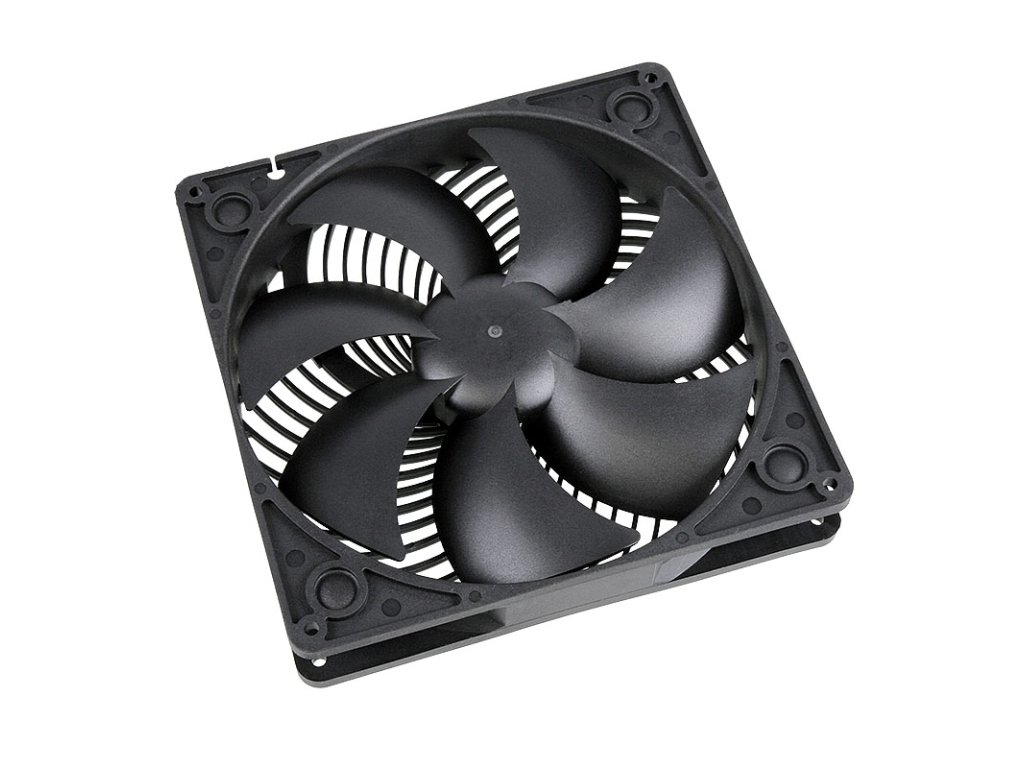 Prúdenie vzduchu v zadnej časti ventilátora je zvyčajne kužeľovité a vyznačuje sa silnou turbulenciou. Zatiaľ čo pri ventilátoroch s výduchovou skriňou to nie je problém, pri nasávacích ventilátoroch je to veľký problém. Zhoršuje totiž prúdenie vzduchu vo vnútri skrine a zvyšuje pravdepodobnosť ďalších turbulencií okolo prekážok v dôsledku širšieho kužeľa, čo vedie k celkovému zníženiu chladiaceho výkonu.Objem vzduchu prepraveného za jednotku času je teda len "polovica úspechu". Špecialista na skrinky SilverStone teraz prišiel s riešením tohto problému, ktoré je rovnako jednoduché ako úžasne účinné. Nástavec s radiálnymi vzperami v zadnej časti núti prúdenie vzduchu do ideálneho kužeľovitého tvaru. Účinnosť tejto technológie bola návštevníkom veľtrhu demonštrovaná pomocou balóna, ktorý sa pokojne vznáša nad ventilátorom.