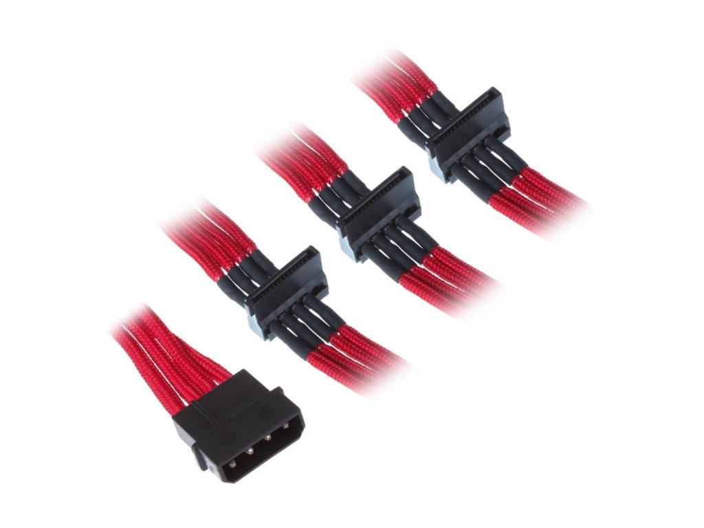Tu ponúkaná verzia je červený kábel Molex-SATA, ktorý možno použiť na napájanie až štyroch diskov (HHD/SSD/ODD), pričom najdlhší konektor SATA má dĺžku približne 30 cm.