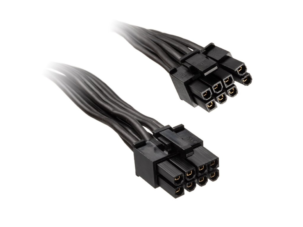 Toto je8-pinový napájací kábel PCIe na 6+2-pinový PCIe s dĺžkou 35 cm. Kábel používa jednotlivé vodiče v štandarde 16 AWG, extrémne jemný medený drôt s hrúbkou 0,8 mm a čiernym silikónovým povlakom. Vďaka tomu jevysoko flexibilný a zároveň odolnýto uľahčuje tvarovanie a ukladanie kábla.Káble majú vysokú prúdovú a tepelnú odolnosť a vydržia teploty do 200 °C na kábloch a 105 °C na konektoroch. Vďaka vysokej poddajnosti, flexibilite a robustnosti je kábelvhodné pre kompaktné herné systémy s malým priestorom a sofistikované pracovné stanice.