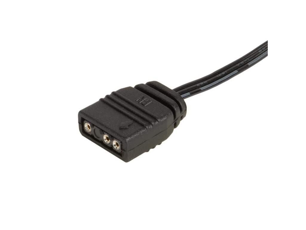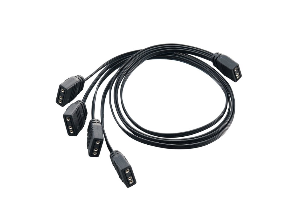 SSilverstone 4-cestný rozdeľovací kábel ARGB môžete jednoducho rozšíriť počet pripojených produktov ARGB LED. Najmä pri veľkých skriniach rýchlo narazíte na hranice možností, pretože na základnej doske zvyčajne nie je dostatok ARGB headerov pre všetky nainštalované ventilátory alebo pásy. S týmto 30 cm dlhým rozdeľovacím káblom môžete pripojiť ažštyri produkty ARGB LED možno pripojiť len k jednému 3-pinovému ARGB konektoru s vhodným 5VDG LED pripojením.StránkaSilverstone 4-cestný rozdeľovací kábel ARGB je kompatibilný so základnými doskami všetkých výrobcov. Pripojenie je preto možné vykonať priamo k základnej doske a ovládať tak svetelné efekty v skrinke. Kábel má čiernu farbu, aby bol čo najmenej nápadný. Pre maximálnu flexibilitu sú súčasťou balenia aj štyri 5VDG (3-pinové) zásuvky, takže zásuvky sa dajú podľa potreby jednoducho vymeniť za zástrčky.