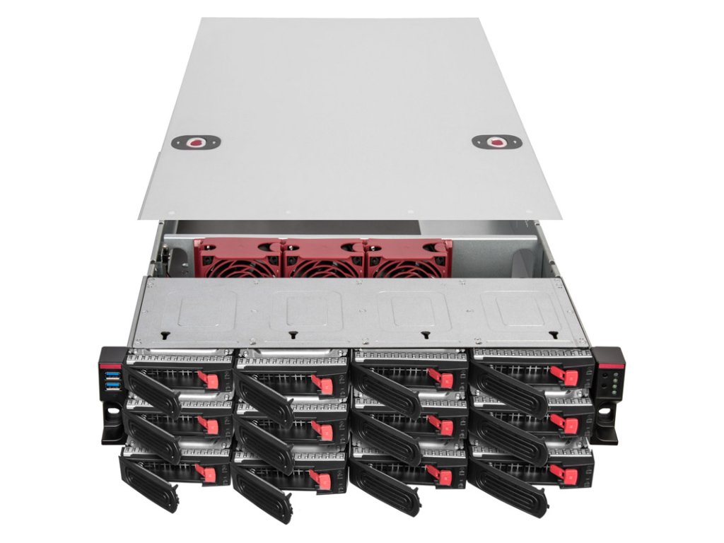 12x 3,5/2,5 palca (externé, hot-swap) - Základná doska pevného disku: 3x 12 portov SAS/SATA na Mini-SAS HD SFF-8643 (s SGPIO)