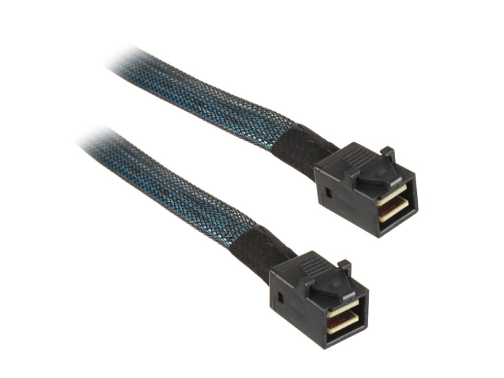 Tento čierny mini kábel SAS má dĺžku 50 cm a rukávy. Na oboch koncoch kábla sú 36-pinové konektory SFF 8643.Technické údaje: