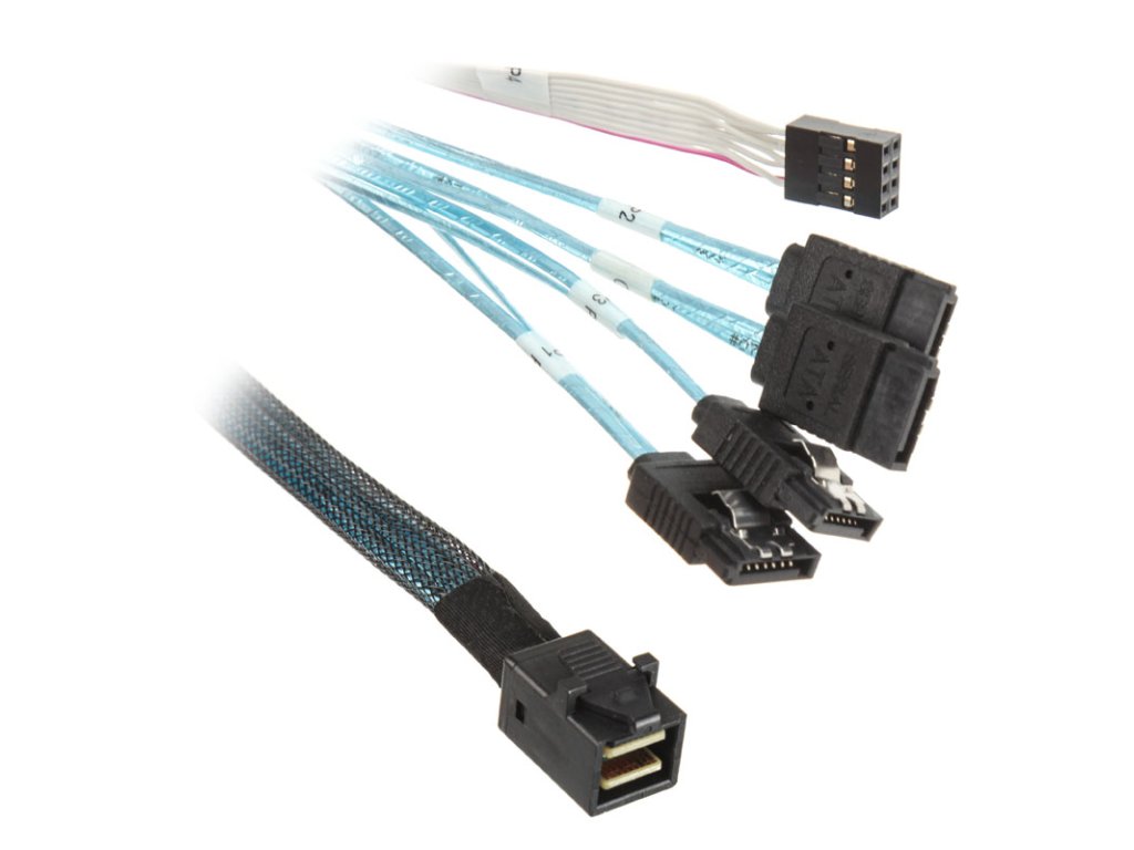 Ponúkaný káblový bič je potrebný, ak chcete pripojiť disky SATA k špeciálnym kartám radiča RAID. Rozširujúce karty majú často jednu alebo viac zásuviek pre konektory typu SFF8643, známe aj ako Mini-SAS. Jednou z výhod tohto rozhrania je, že cez toto jediné pripojenie možno prenášať elektrické signály až štyroch pevných diskov SATA (6G) alebo SSD. Na doskách plošných spojov kariet radičov RAID často nie je dostatok miesta na pripájkovanie toľkých portov SATA, koľko ich môže radič ovládať.V tomto prípade sa často volí rozhranie mini-SAS s rozhraním SFF8643. Po pripojení k takejto zásuvke sa druhý koniec tu ponúkaného kábla skladá zo štyroch 7-pinových dátových konektorov SATA a kábla SGPIO. Kábel, resp. jednotlivé žily majú celkovú dĺžku približne 50 cm a sú čiastočne obalené čiernym plášťom, pričom samotné konektory sú v čiernej farbe.