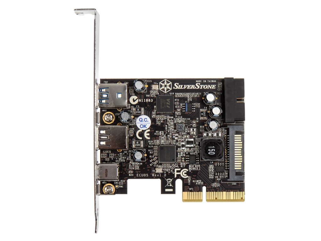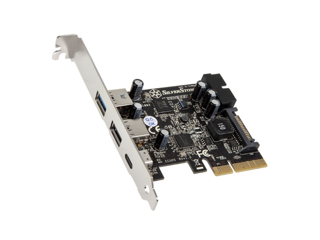 S touto zásuvnou kartou ponúka spoločnosť SilverStone ideálne riešenie na rozšírenie systému až o päť portov USB. Rozširujúcu kartu možno použiť v akomkoľvek systéme s voľným portom PCIe x2, ale samozrejme funguje aj vo všetkých slotoch PCIe x4, x8 a x16. Karta má externý port USB 3.1 typu C a dva externé porty USB 3.0 typu A. Čierny port má dokonca funkciu rýchleho nabíjania pre mobilné zariadenia. Vnútri je rozširujúca karta vybavená aj 19-pinovým headerom, ktorý umožňuje pripojenie ďalších dvoch portov USB 3.0.
