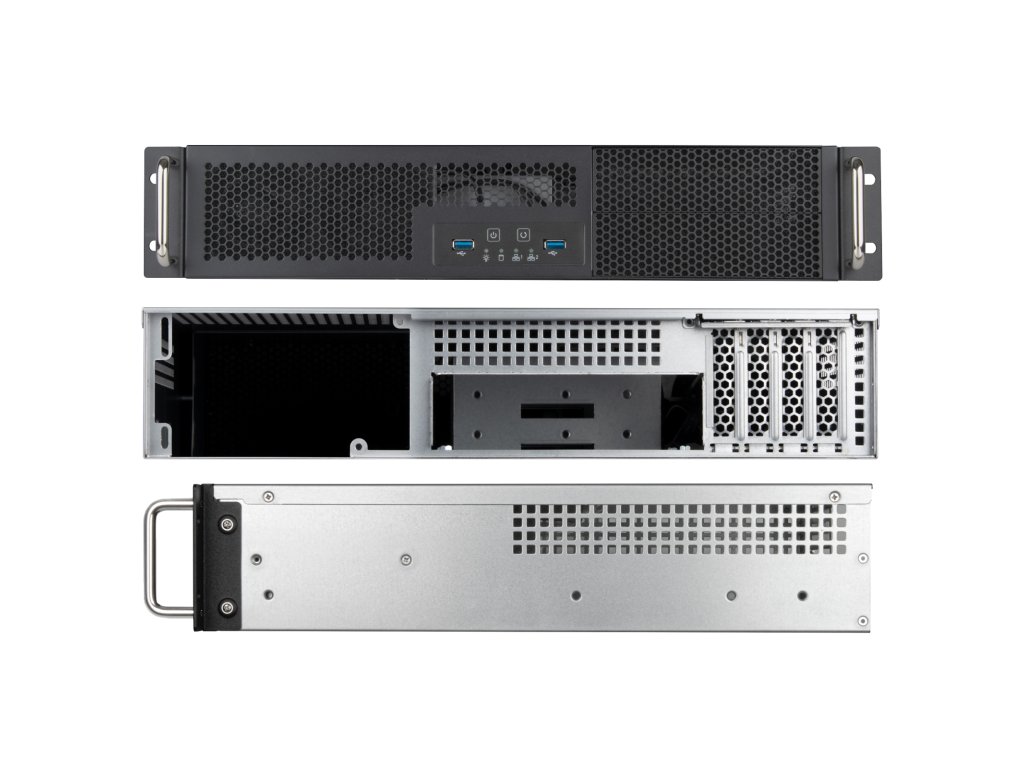 - 2U rackové serverové puzdro s čiernou prednou časťou