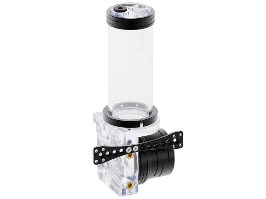 S touto sadou získateVyrovnávacia nádrž z adresyPočítače Singularity so 150 milimetrovou rúrkou a dvoma acetalovými nástavcami. Nádrž s priemerom 60 milimetrov pozostáva zpriehľadný akrylaj dve prílohy. Jedinečná 90-stupňová konštrukcia hlavy čerpadla umožňuje viac možností montáže a pripojenia ako kedykoľvek predtým. Celkovo sedem portov G1/4 poskytuje široké možnosti integrácie do vodného okruhu. Kombináciu dopĺňa štýlové puzdro čerpadla D5 zo série Protium. Príslušné čerpadlo je možné zakúpiť samostatne.