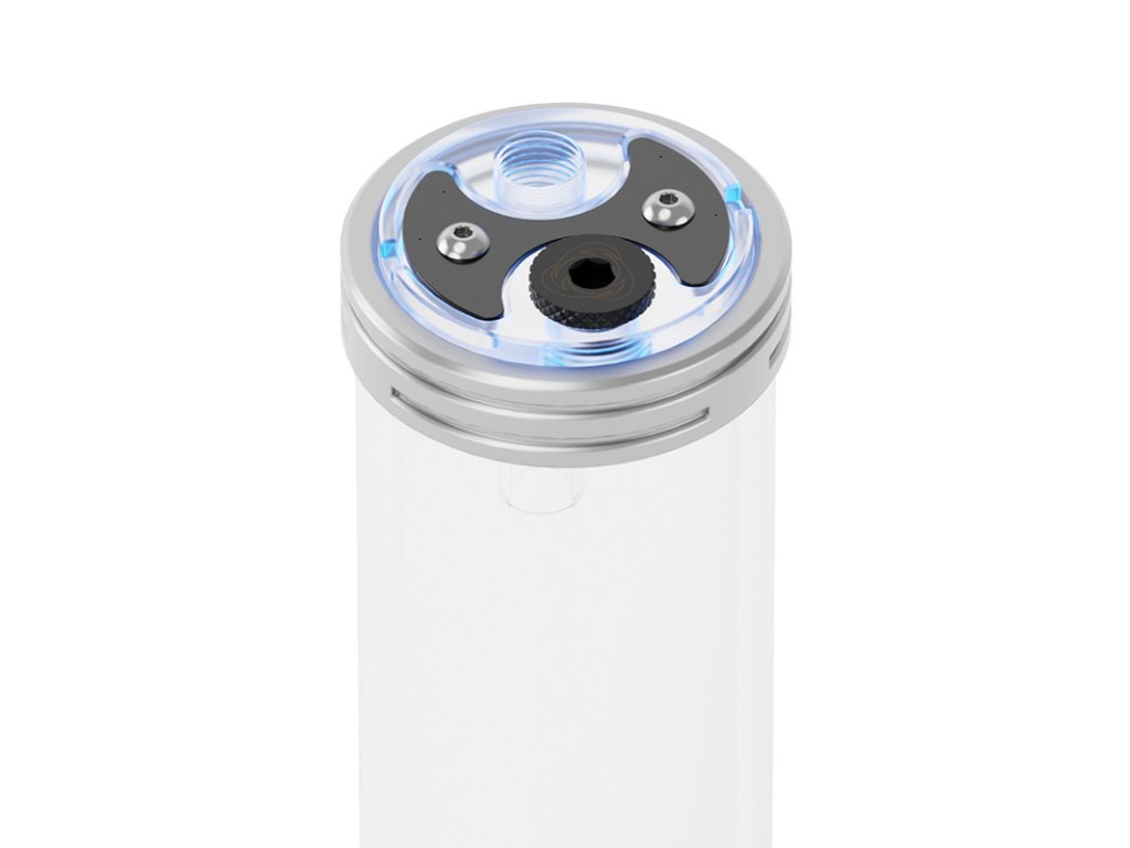 Nádrž má celkom štyri prípojky. Dve v spodnej časti a dve v hornej časti vyrovnávacej nádrže. Uzávery majú v hornej časti priehlbinu, ktorá zachytáva kvapalinu v prípade úniku. To slúži aj ako montážna pozícia pre integrované LED diódy ARGB/DRGB. LED diódy sú umiestnené tak, že osvetľujú celú nádržku a chladiacu kvapalinu v nej, čo umožňuje, aby vaša slučka svietila podľa vášho želania.