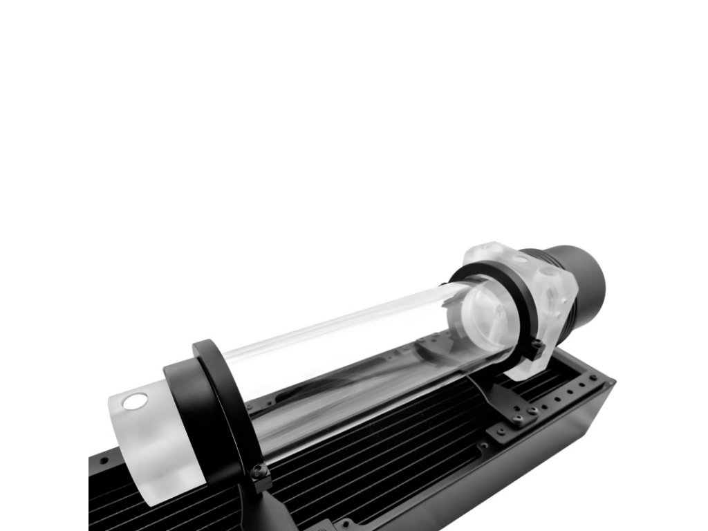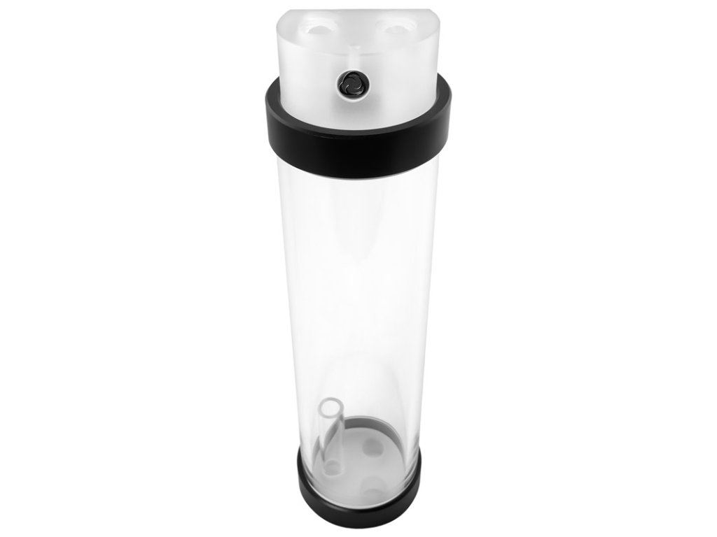 Expanzná nádrž Protium od spoločnostiPočítače Singularity dodáva sa s trubicou a tromi nástavcami. Nádržka s priemerom 60 mm, ako aj základňa a veko sú vyrobené z priehľadného akrylu. Nástavce majú tiež matný povrch. Čierne eloxované hliníkové poistné krúžky držia koncovky na svojom mieste. Celkovo až sedem portov G1/4 poskytuje široké možnosti integrácie do vodného okruhu.Singularity Computers Protium Reservoir 200 mm na prvý pohľad: