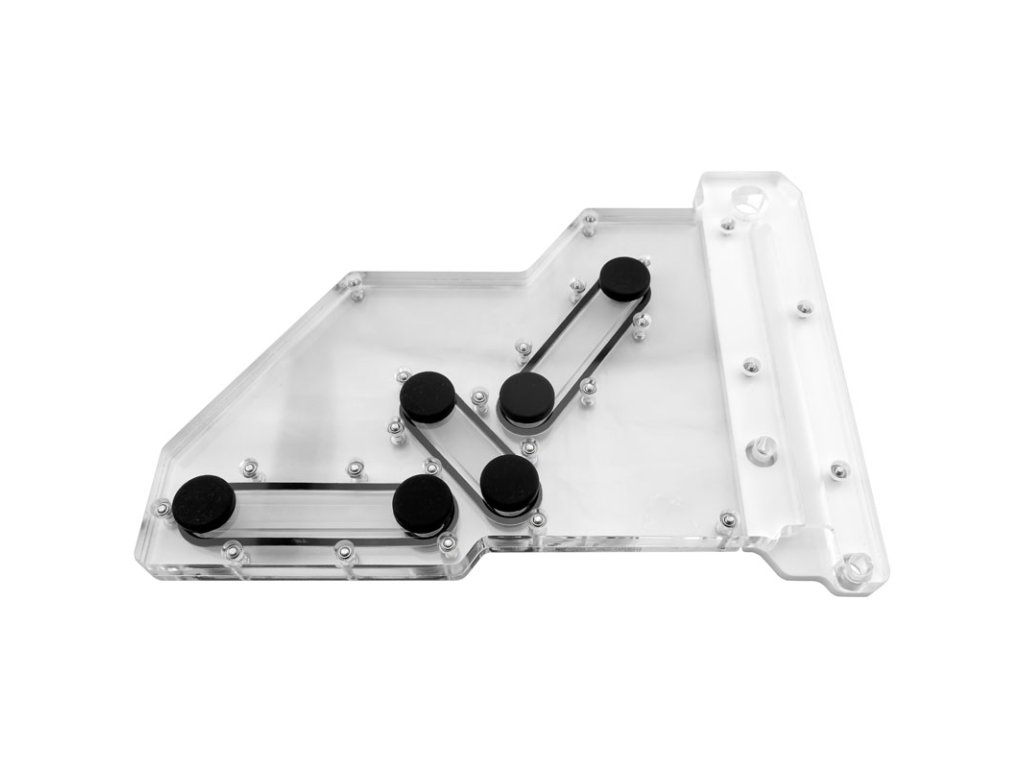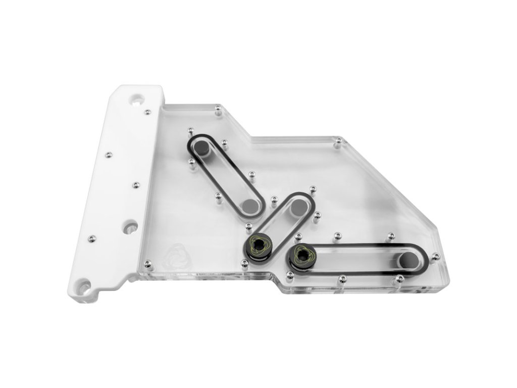 SSpectre 2.0 Elite Kit strana ponukyPočítače Singularity ponúka veľkú distribučnú dosku pre skriňu Spectre 2.0. Veľká distro doska z priehľadného akrylového skla je pripevnená na ľavej strane skrine Showcase. Má veľkú priehlbinu určenú pre vertikálne namontované grafické karty s chladiacimi blokmi EK Water Blocks od GTX 1080 vyššie. V rovnakej výške sú usporiadané aj prípojky G1/4" pre tieto chladiče.Technické údaje: