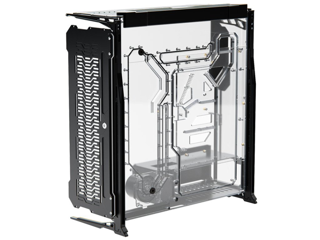 StránkaPočítače Singularity Spectre 3.0 ponukyrozsiahle možnosti integrácie vlastného systému vodného chladenia: Pravý bočný panel krytu je vyrobený z priehľadného akrylového skla a slúži akoDistroplate s mnohými prípojkami pre vodný okruh. Obsahuje nádrž s plniacim otvorom, puzdro pre čerpadlá D5, tri výstupy a tri vstupy. V najnižšom bode chladiaceho okruhu je nainštalovaný aj praktický vypúšťací otvor, aby sa chladiaca kvapalina dala pohodlne vypúšťať.Vďaka premyslenému usporiadaniu si skriňa vyžaduje menej komponentov na realizáciu minimalistickej, elegantnej vlastnej slučky. Vodné chladenie sa dostalo do popredia aj pri návrhu ostatných vonkajších panelov. Tie sú vyrobené zCNC frézovaný hliník hliník. Hliník 6061 sa používa aj v automobilovom a leteckom priemysle a okrem vysokej stability má aj dobrú tepelnú vodivosť. Dva výmenníky tepla, ktoré možno nainštalovať do prednej časti a veka360 mm veľké a 60 mm vysoké radiátory výmenníky tepla sú v kontakte s hliníkom a pasívne odvádzajú teplo do krytu.