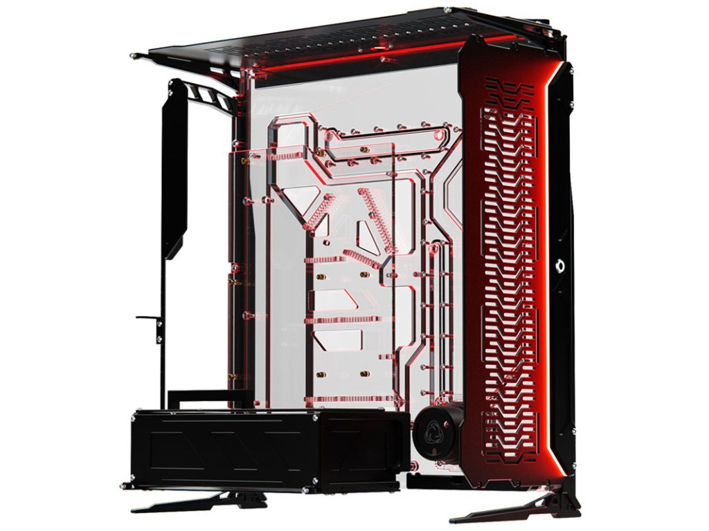 StránkaPočítače Singularity Spectre 3.0 je veľká veža pre základné dosky XL-ATX s rozsiahlymi možnosťami inštalácieVlastné vodné chladenie. Puzdro máintegrovaná distribučná doskaktorý slúži ako podnos pre základnú dosku a je vyrobený z priehľadného akrylového skla. Čierne vonkajšie panely sú vyrobené z hrubéhoCNC frézovaný hliník vyrobené. Vďaka početným vetracím otvorom umožňujú účinný odvod tepla. Celkovo môžu byťdva 360 mm radiátory inštalácia. Grafickú kartu je možné zobraziť vertikálne pomocou dodaného stúpacieho kábla.Prehľad vlastností počítača Singularity Computers Spectre 3.0 Big Tower