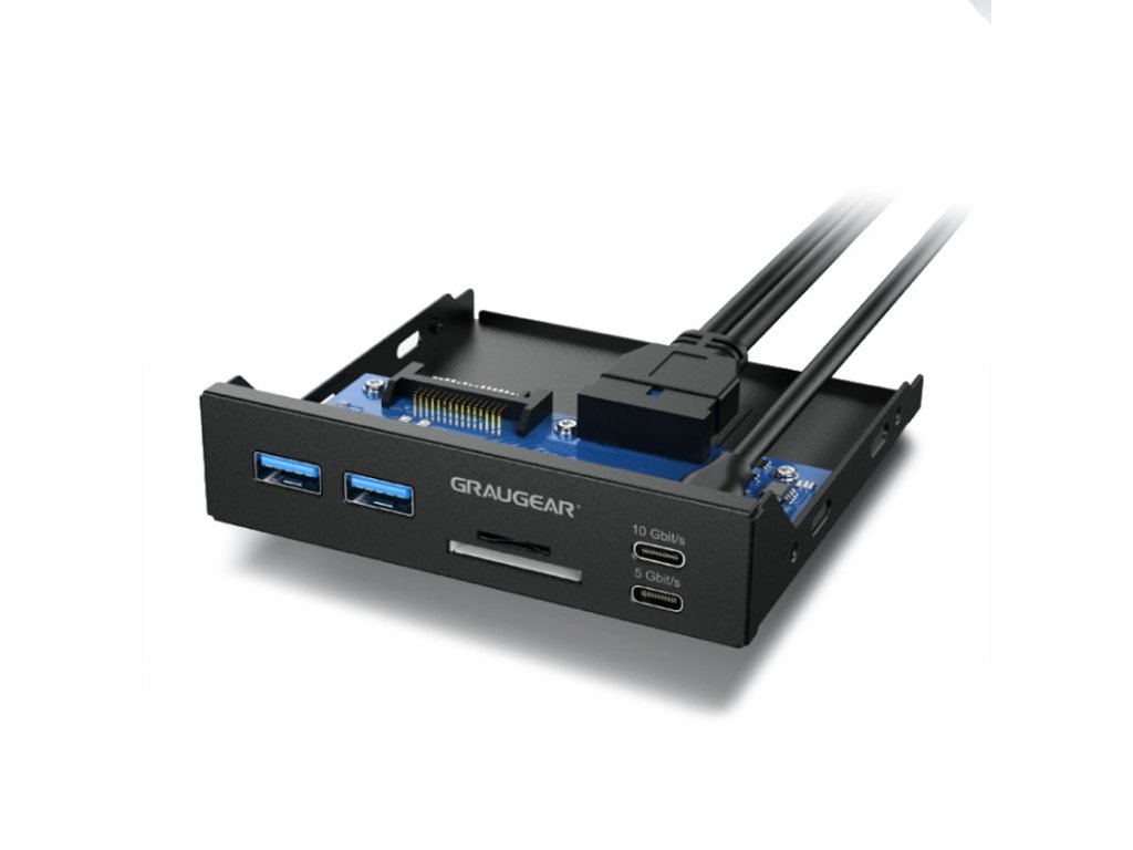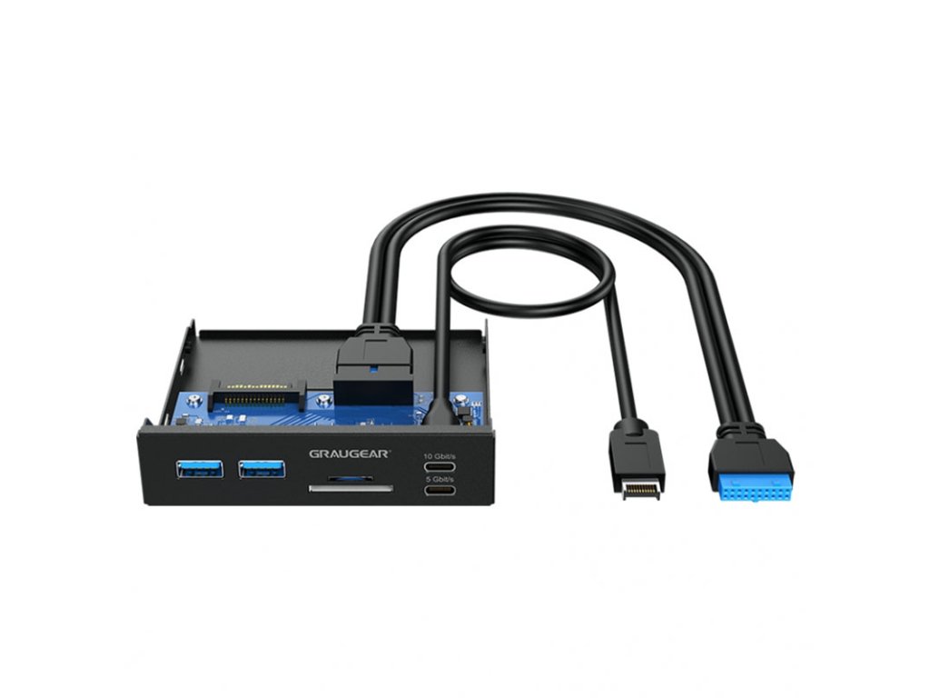 Pri pripojení typu C sa údaje prenášajú rýchlosťou prenosu dátdo 10 Gbit/s a na portoch USB-A sdo 5 Gbit/s prevod. Predný panel má jednoduchý dizajn a inštaluje sa do voľného 3,5-palcového štandardného slotu v počítači.