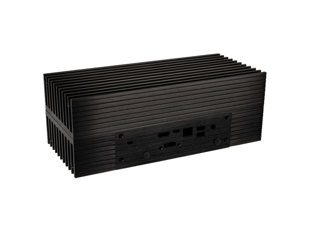 Horné a vonkajšie okraje sú takmer úplne pokrytéHliníkové chladiace rebrá na vytvorenie účinného pasívneho chladenia. Takto saPuzdro Turing A50 MKII UCFF aPU pracuje bez ventilátora, a preto je úplne tichý. APU a VRM odvádzajú odpadové teplo prostredníctvomKontaktné plochy s tepelnou pastou a podložkami do puzdra. Hliníkové puzdro odvádza odpadové teplo do okolia prostredníctvom rebier. To znamená, že samotný kryt funguje ako chladič bez toho, aby spôsoboval rušivý hluk.Tepelná pasta a podložky sú súčasťou balenia pre ideálny prenos tepla. Súčasťou dodávky sú aj skrutky základnej dosky, všetok ďalší potrebný montážny materiál a kábel SATA s doskou plošných spojov a držiakmi na montáž 2,5-palcového dátového nosiča.