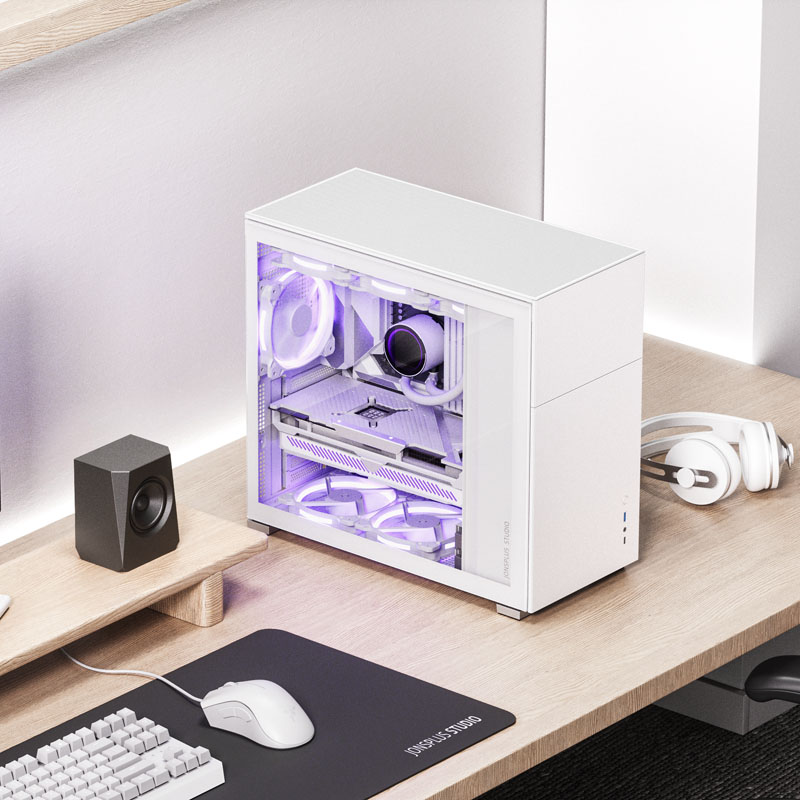 Jonsbo je k dispozícii v niekoľkých verziách, so sieťkou a bez sieťky, a dokonca s veľkým displejom na prednej strane, na ktorom môžete zobrazovať systémové informácie alebo animované šetriče obrazovky. Bez ohľadu na to, čomu dávate prednosť, s Jonsbo D41 si môžete vytvoriť dokonalú hernú zostavu. Táto verzia STD v bielej farbe má uzavretú prednú časť, ktorá je ideálna pre tichú zostavu.Špičkový herný hardvér: dokonale prezentovaný