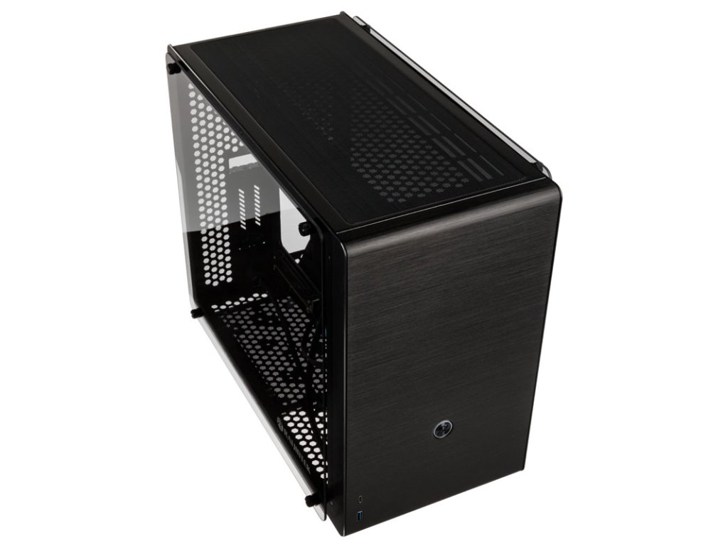 Premyslená koncepciaOphion M EVO TGS od spoločnosti Raijintek umožňuje inštaláciu nekompromisného herného počítača napriek jeho malým rozmerom:Grafická karta je umiestnená paralelne za zásobníkom základnej dosky v samostatnej komore. Okrem toho je každý štvorcový centimeter oceľového vnútraRaijintek Ophion M EVO TGS priestor je využitý rozumne, zatiaľ čo v bežných vežových skrinkách je zvyčajne zbytočne veľa voľného priestoru.Zvonku zaujme jednoduchým dizajnom a bezchybnou povrchovou úpravou. Stránkaeloxovaný hliník v čiernej farbe s hrúbkou 2 milimetre a elegantným povrchom s vlasovou líniou, ktorý zaručuje osobitý vzhľad. Robustný kov je doplnenýdva bočné panely z 3 milimetre hrubého tvrdeného skla. Tie poskytujúRaijintek Ophion M EVO TGS nielenže vyzerajú výnimočne, ale poskytujú aj nerušený pohľad na vnútro krytu a v ňom nainštalovaný hardvér.