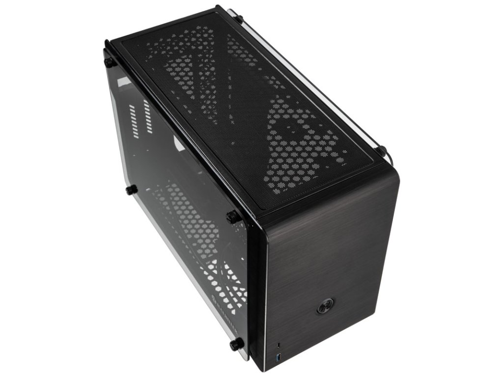 Navonok tento inovatívny malý model zaujme svojím asketickým dizajnom v kombinácii s dokonalým spracovanímeloxovaný hliník v čiernej farbe. Kov s hrúbkou 2 milimetre a elegantný povrch s vlasovou úpravou vytvárajú nezameniteľný vzhľad. Robustný kov dopĺňajú dva bočné panely z 3 milimetre hrubého tvrdeného skla, ktoré dodávajúRaijintek Ophion nielenže prepožičiavajú novému dizajnu výnimočný vzhľad, ale umožňujú aj nerušený pohľad na interiér a v ňom nainštalovaný hardvér.Na jednoduchej prednej strane zariadenia Ophion nájdeteTlačidlo napájania s logom Raijintek iba dva nesprevádzané porty USB s interným konektorom základnej dosky. Okrem portu USB 3.0 typu A má spoločnosť Raijintek aj moderný port USB 3.0 typu C.