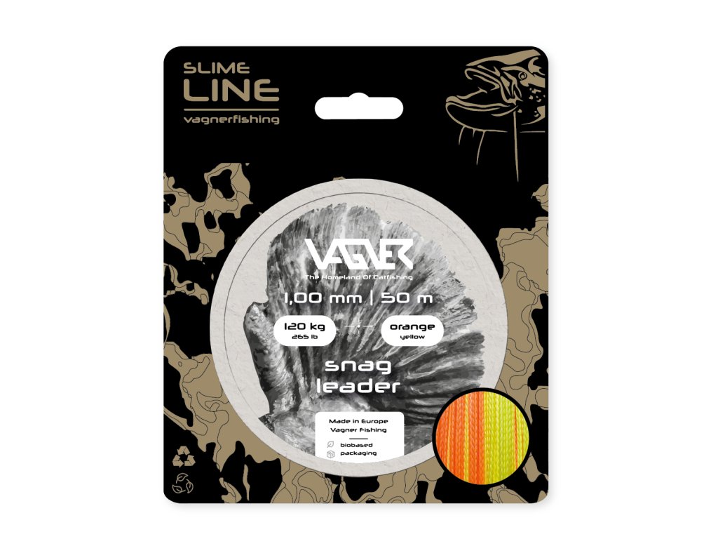 VAGNER Sumcová šňůra Snag Leader Orange-Yellow je určena k lovu do extrémních podmínek, kdy hrozí přebroušení slabší kmenové šňůry o kameny, škeble či jiné překážky pod vodní hladinou. Tento šokový návazec má vysokou oděruvzdornost a při průměru 1,00 mm má nosnost 120 kilogramů. Je vyroben z nejkvalitnějších japonských super 8 PE vláken.