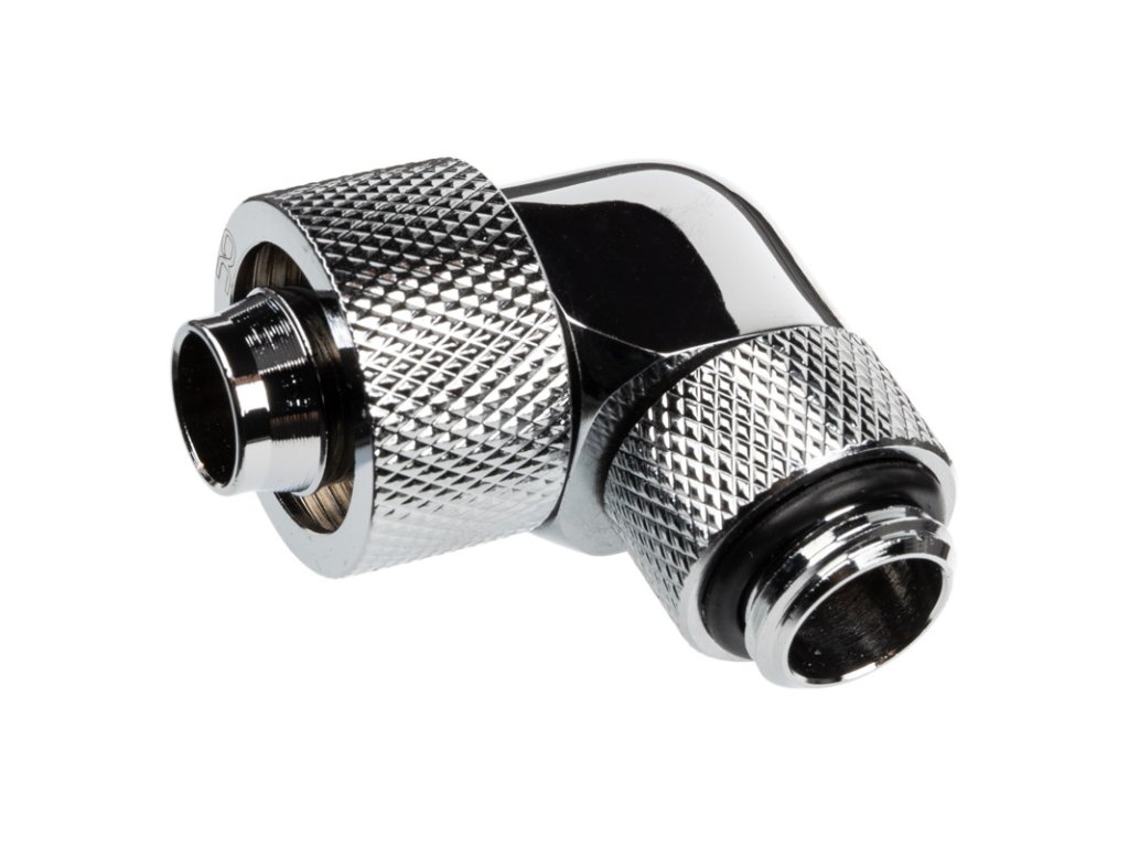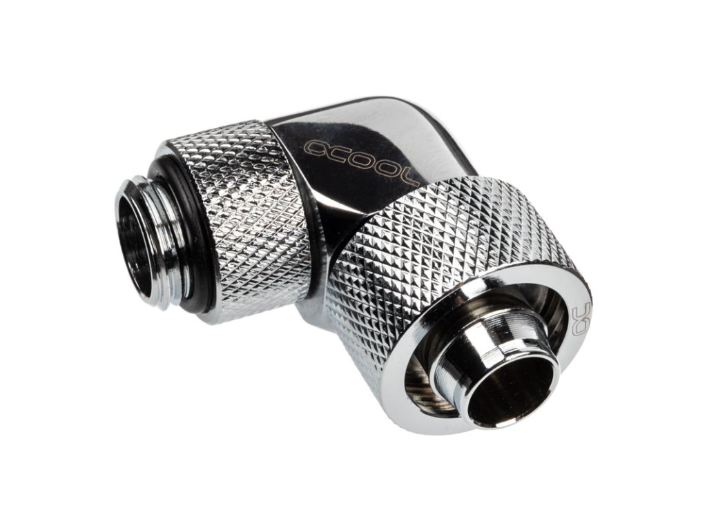 Soklová prípojka Alphacool 90 stupňov G1/4 palca AG na 16/10 mm - otočná, chrómovo strieborná