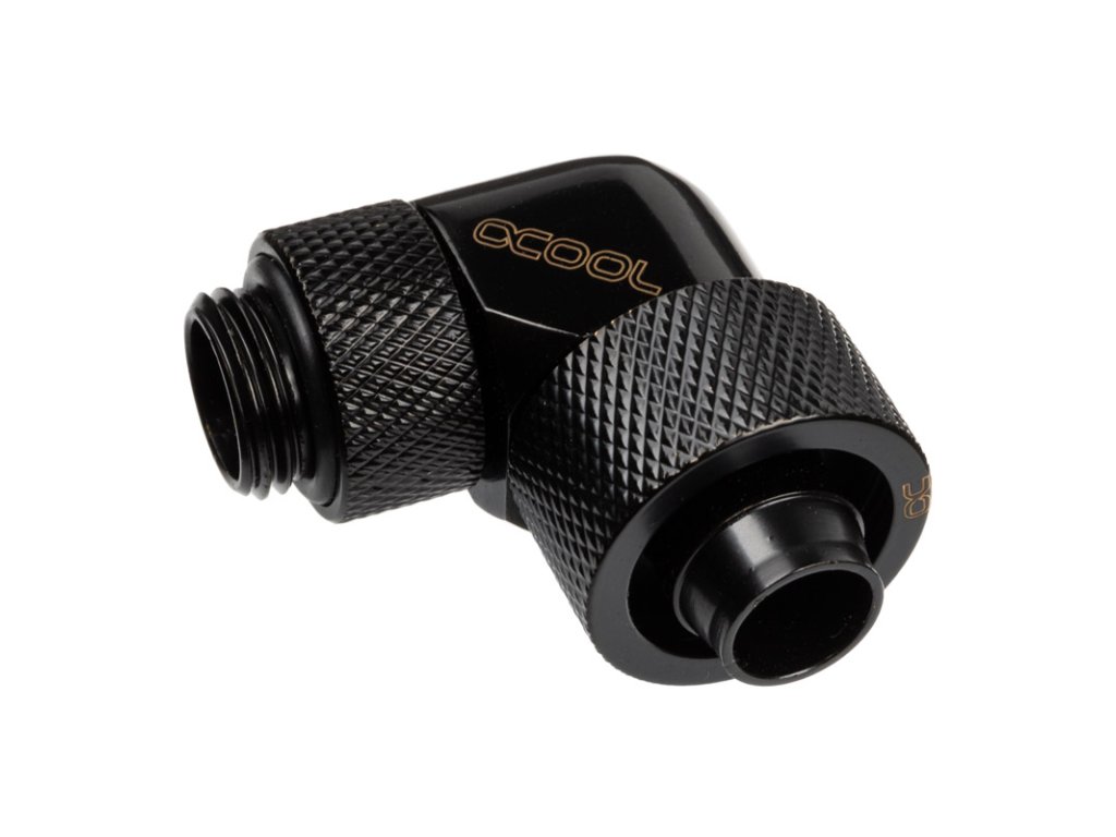 Soklová prípojka Alphacool 90 stupňov G1/4 palec samec na 16/10 mm - otočná, čierna