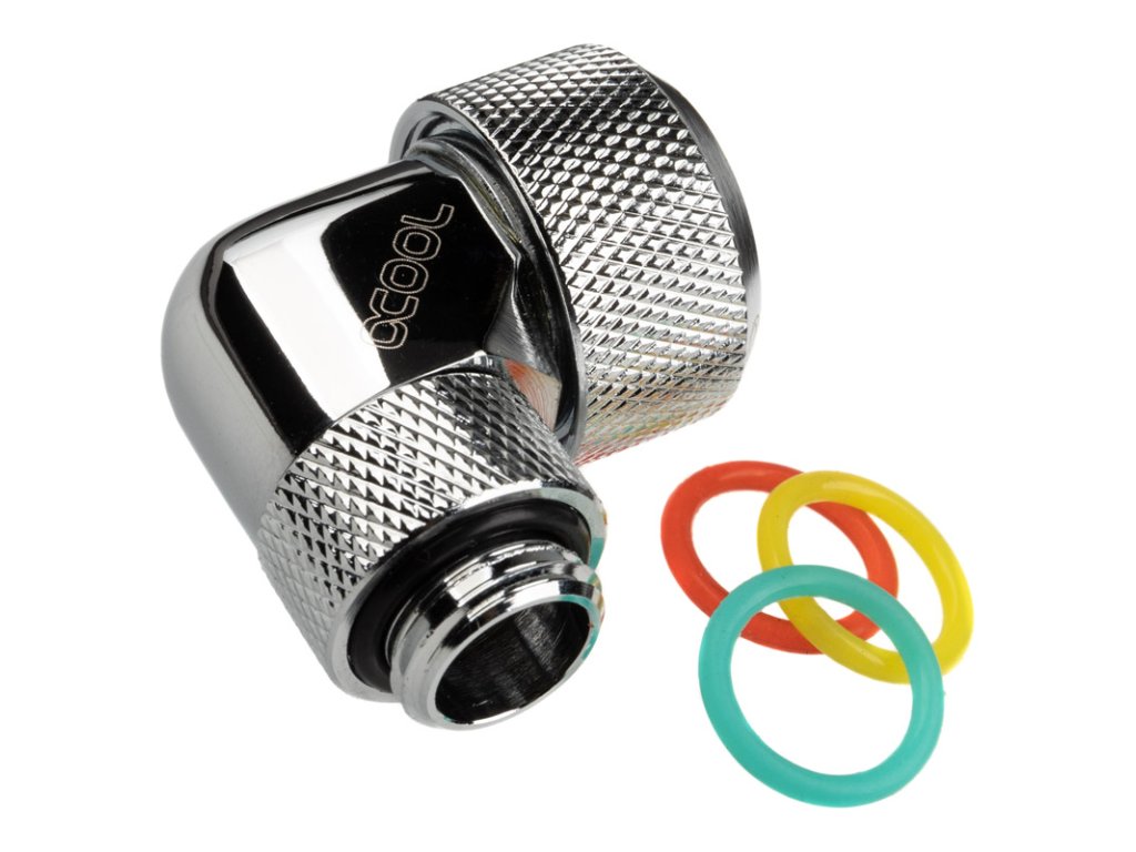 Soklová prípojka Alphacool 90 stupňov G1/4 palec samec na 16 mm OD hardtube - otočná, lesklá strieborná