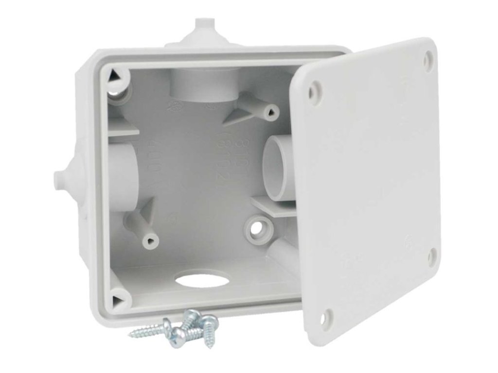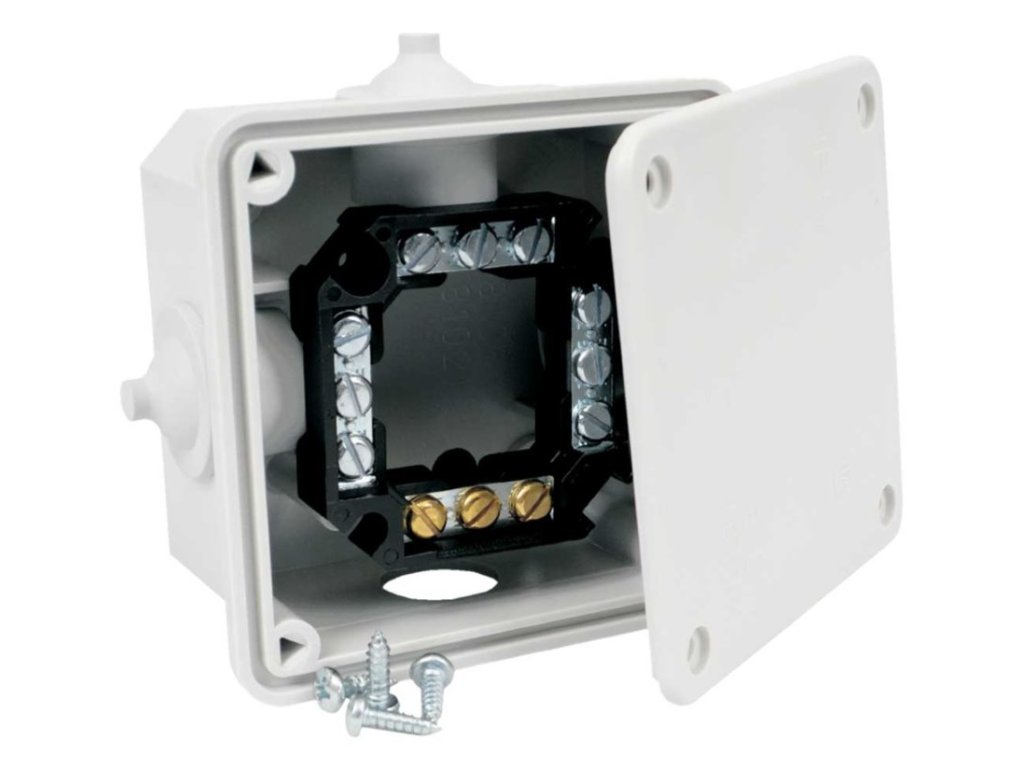 Součástí balení jsou průchodky, svorkovnice a šrouby pro připevnění víčka.