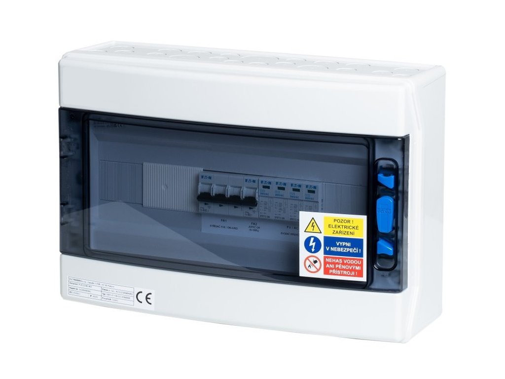 Vhodné kombinovat s rozvaděčem R-FVE-DC2T1-IKA, R-FVE-DC3T1-IKA pro stejnosměrnou část instalace a rozvaděči R-FVE-A40-2 pro zálohované okruhy s manuálním přepínačem (přemostění střídače), nebo rozvaděčem R-FVE-Z4 s proudovým chráničem, zásuvkami a jištěním.