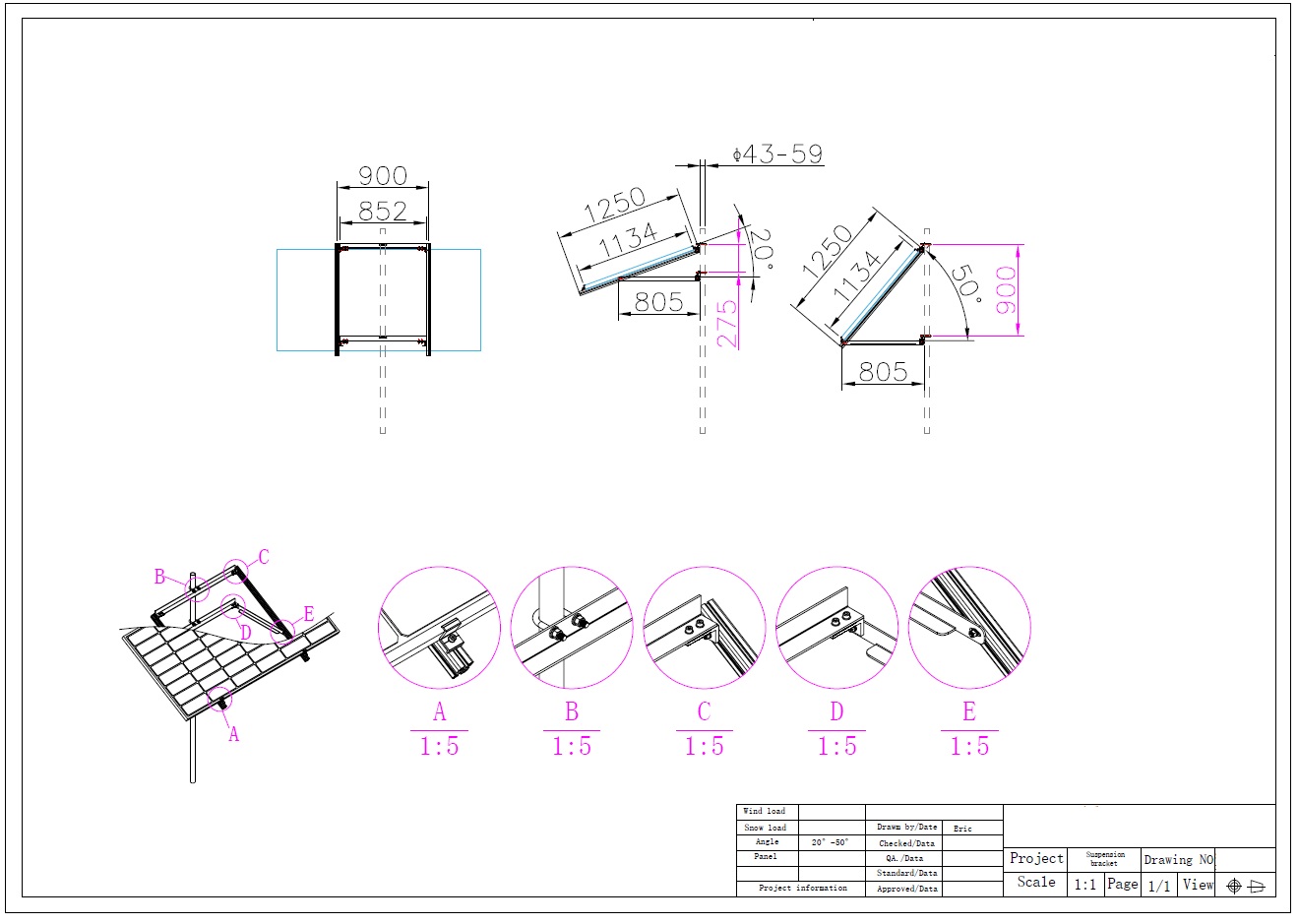 Xtend Solarmi SCPO-9-12Držák určený pro upevnění velkých solárních panelů s šířkou od 990 do 1134 mm na sloup s průměrem 40 až 56 mm.